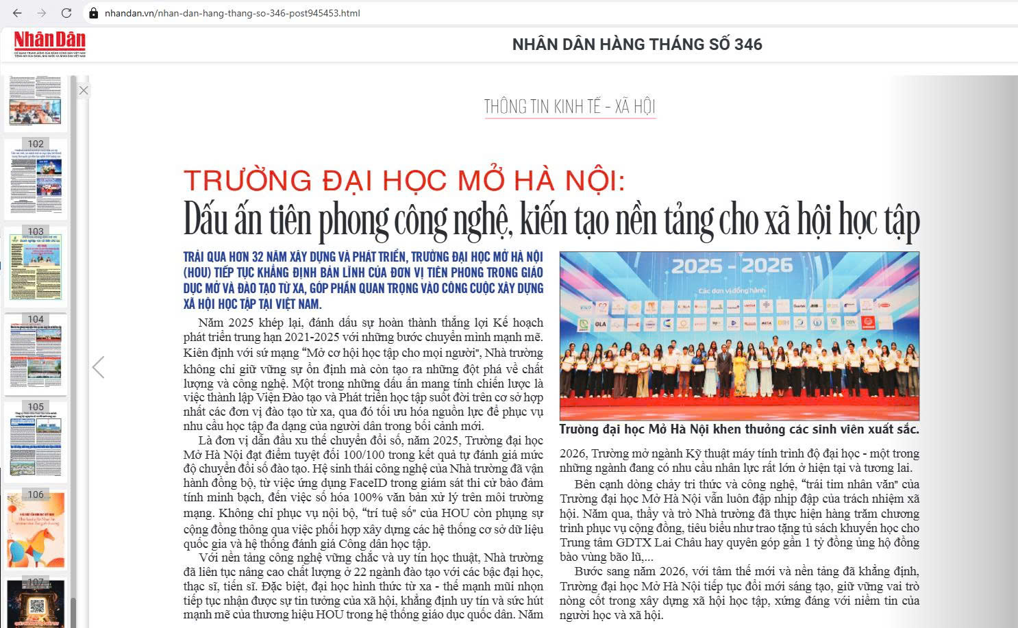 Trường Đại học Mở Hà Nội: Dấu ấn tiên phong công nghệ, kiến tạo nền tảng cho xã hội học tập 01/02/2026 Thùy Linh Xem thêm