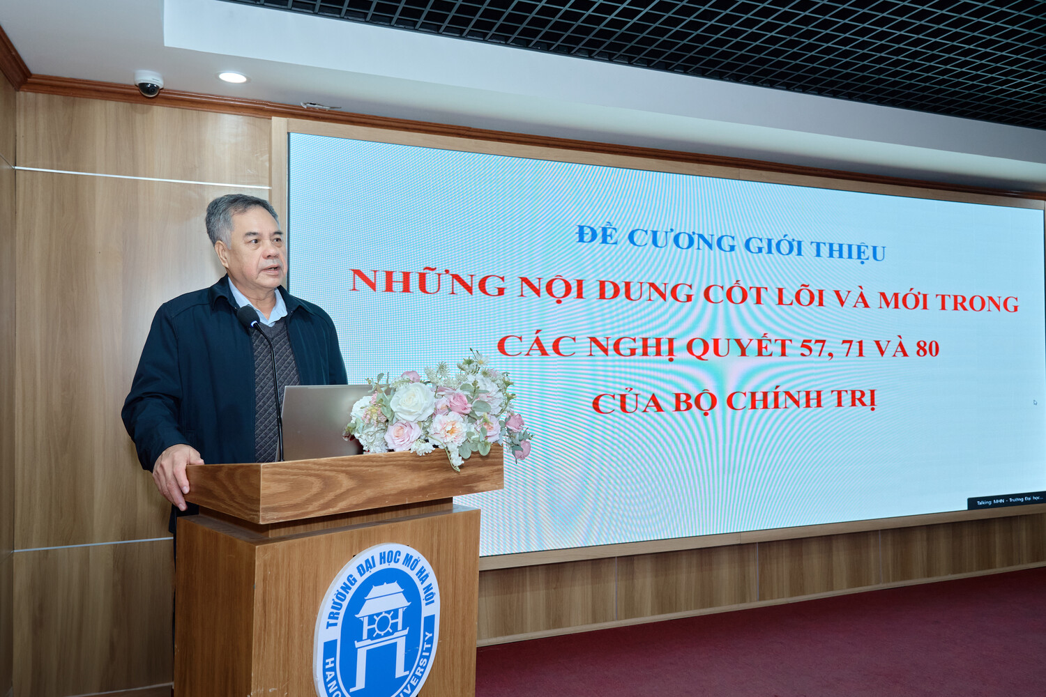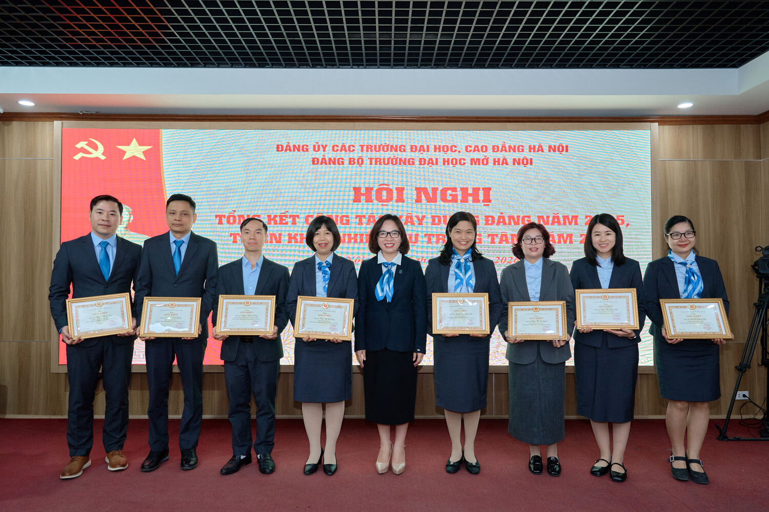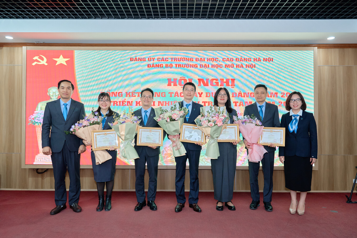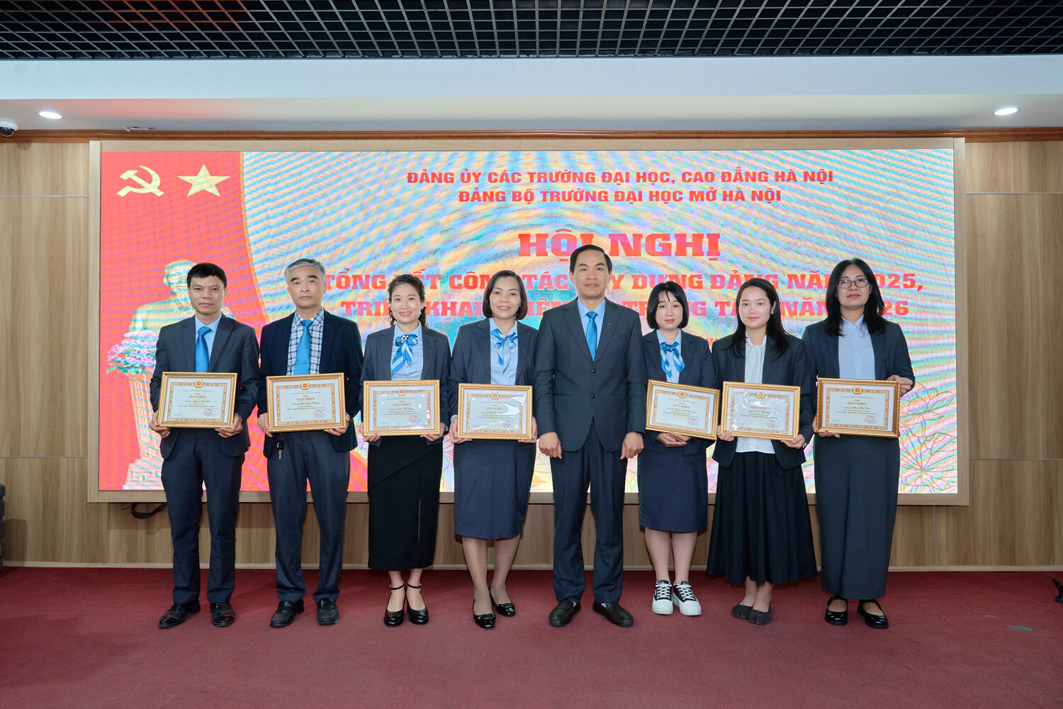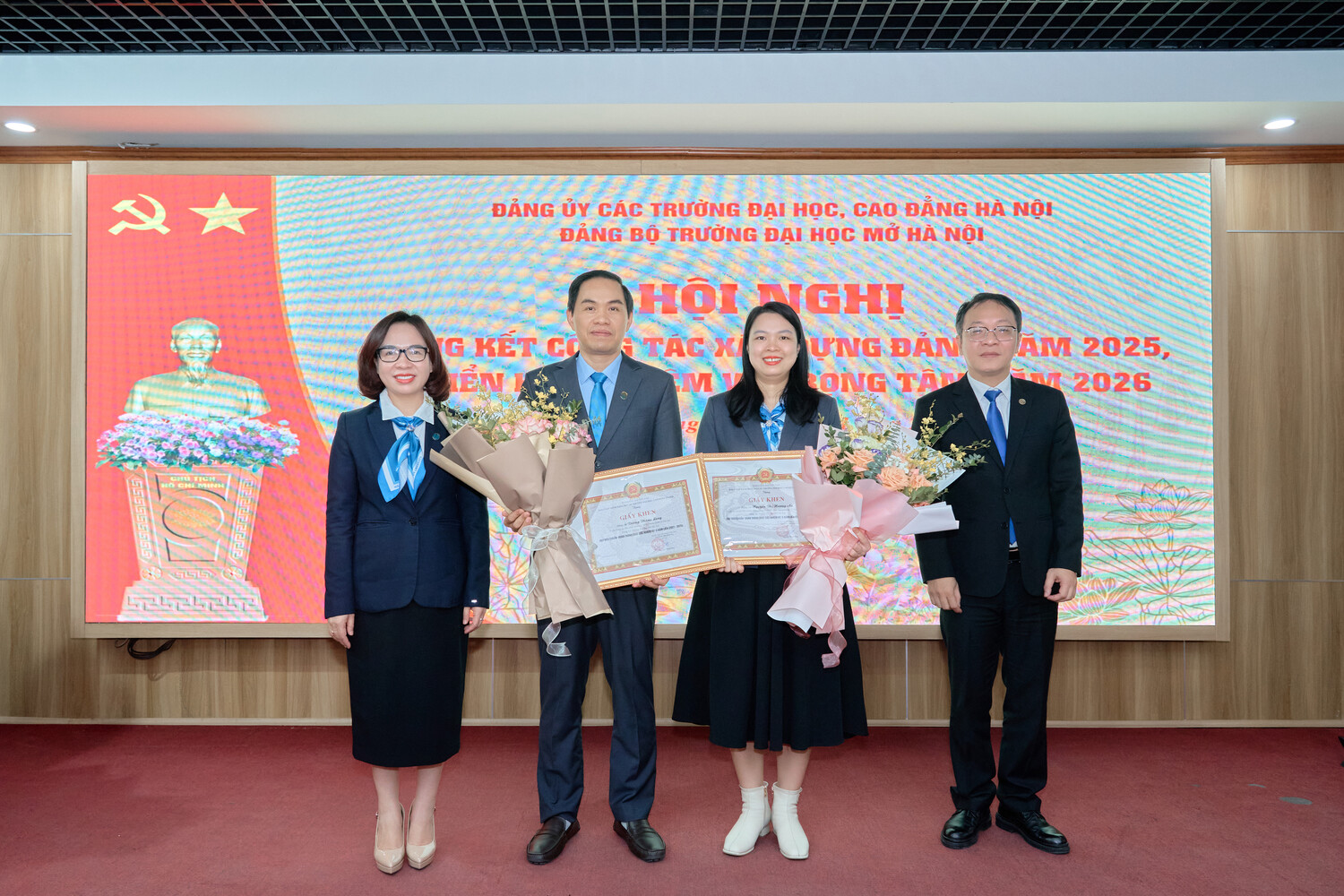 Sáng ngày 15/01/2025, Đảng bộ Trường Đại học Mở Hà Nội tổ chức Hội nghị Tổng kết công tác xây dựng Đảng năm 2025, triển khai nhiệm vụ trọng tâm năm 2026. Hội nghị được tổ chức trực tiếp tại Hội trường A2 và kết nối trực tuyến tới các điểm cầu trong toàn Đảng bộ, thể hiện tinh thần đổi mới phương thức lãnh đạo, ứng dụng công nghệ thông tin trong sinh hoạt Đảng, đồng thời tạo điều kiện để đông đảo cán bộ, đảng viên tham gia đầy đủ, nghiêm túc.