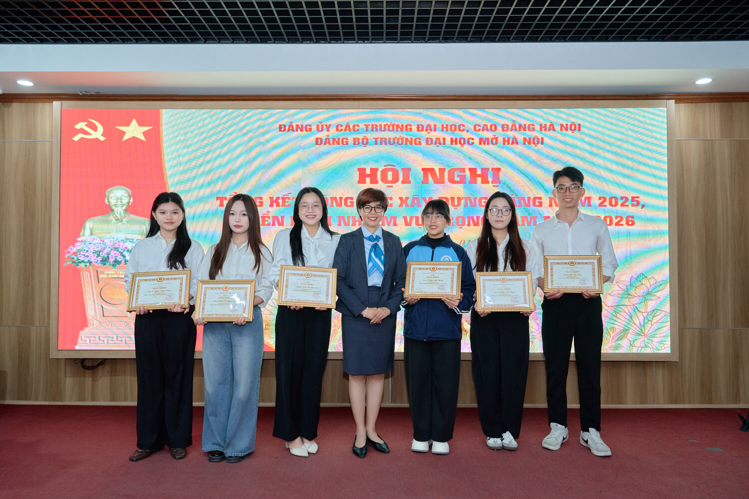 Tại Hội nghị, Đảng ủy các trường Đại học, Cao đẳng Hà Nội đã trao giấy khen cho 02 đảng viên đạt tiêu chuẩn “Hoàn thành xuất sắc nhiệm vụ” 5 năm liền (2021-2025) gồm: đồng chí Dương Thăng Long và đồng chí Nguyễn Thị Hương An. Đây là sự ghi nhận xứng đáng đối với những đóng góp bền bỉ, gương mẫu của các đồng chí trong công tác Đảng và chuyên môn. Hội nghị cũng trao giấy khen cho 05 chi bộ và 62 cá nhân có thành tích xuất sắc trong năm 2025, tạo động lực thi đua sôi nổi trong toàn Đảng bộ.