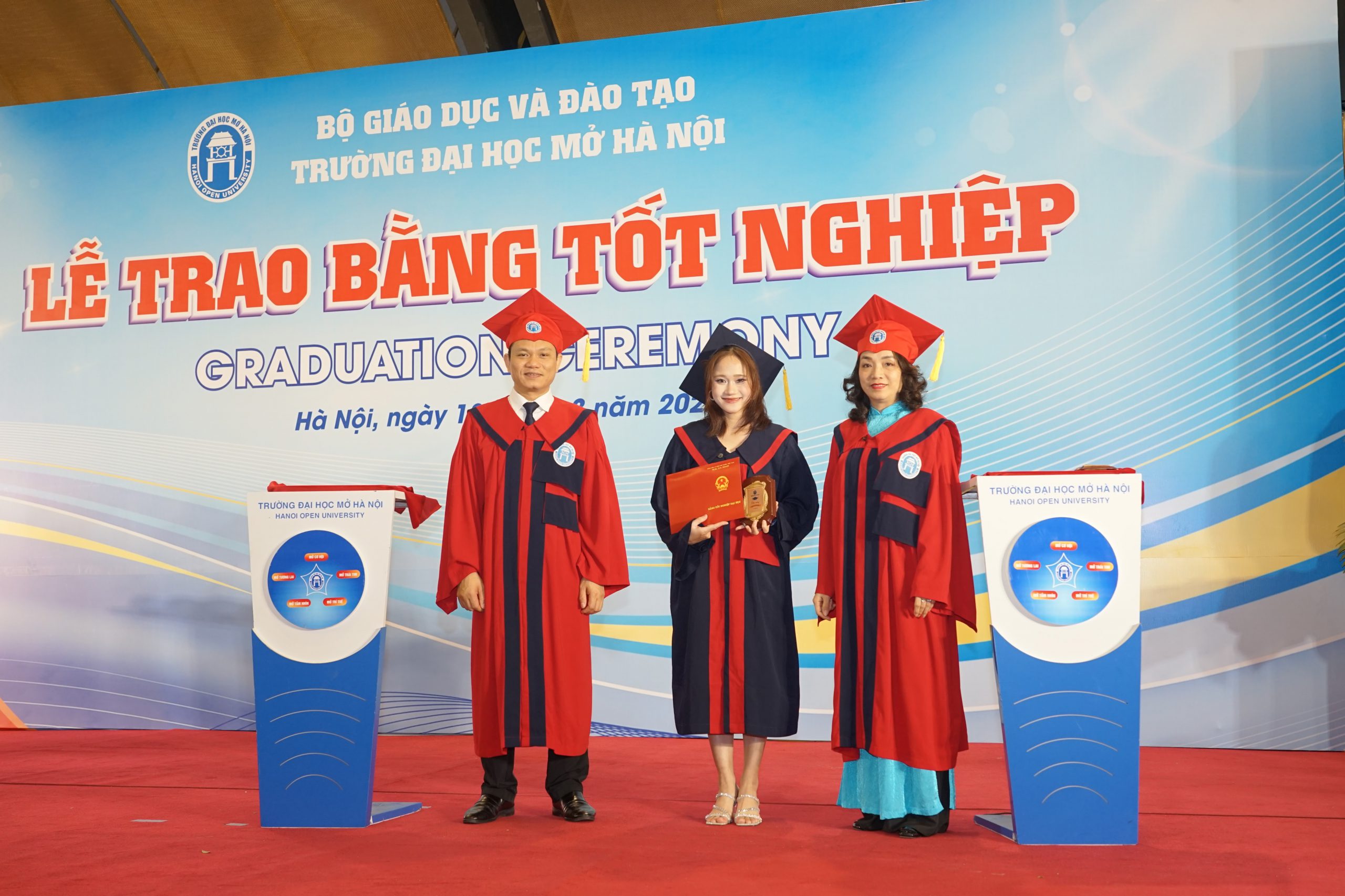 Lễ trao bằng tốt nghiệp là sự kiện quan trọng thường niên của Trường Đại học Mở Hà Nội, ghi nhận kết quả học tập, rèn luyện của sinh viên sau nhiều năm nỗ lực. Đặc biệt, với mô hình đào tạo mở và linh hoạt, nhà trường đã tạo điều kiện để người học ở nhiều độ tuổi, ngành nghề khác nhau có cơ hội tiếp cận tri thức và hoàn thành chương trình đào tạo.