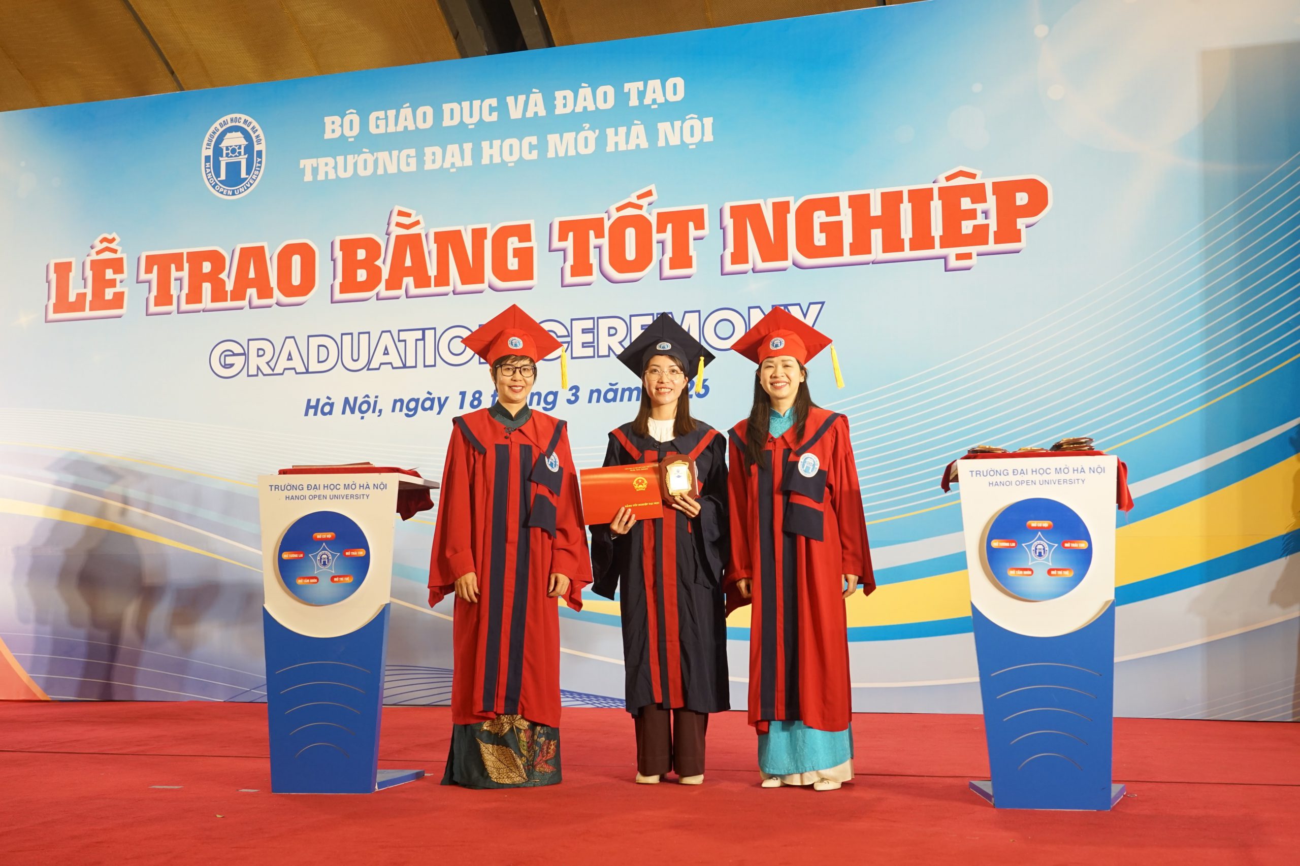 Ngày 18/3/2026, tại Trung tâm Hội nghị Quốc gia (Hà Nội), Trường Đại học Mở Hà Nội long trọng tổ chức Lễ trao bằng tốt nghiệp cho hơn 1000 tân thạc sĩ, cử nhân và kỹ sư. Buổi lễ diễn ra trong không khí trang trọng, ấm áp và đầy xúc động, đánh dấu cột mốc quan trọng trong hành trình học tập và trưởng thành của các tân khoa.