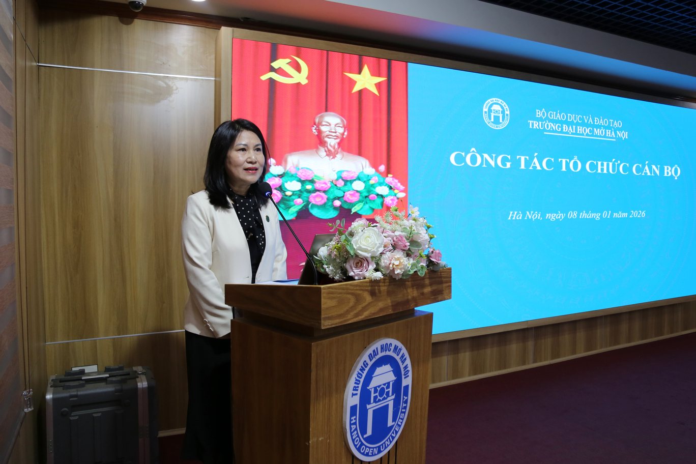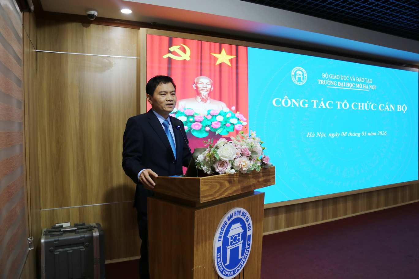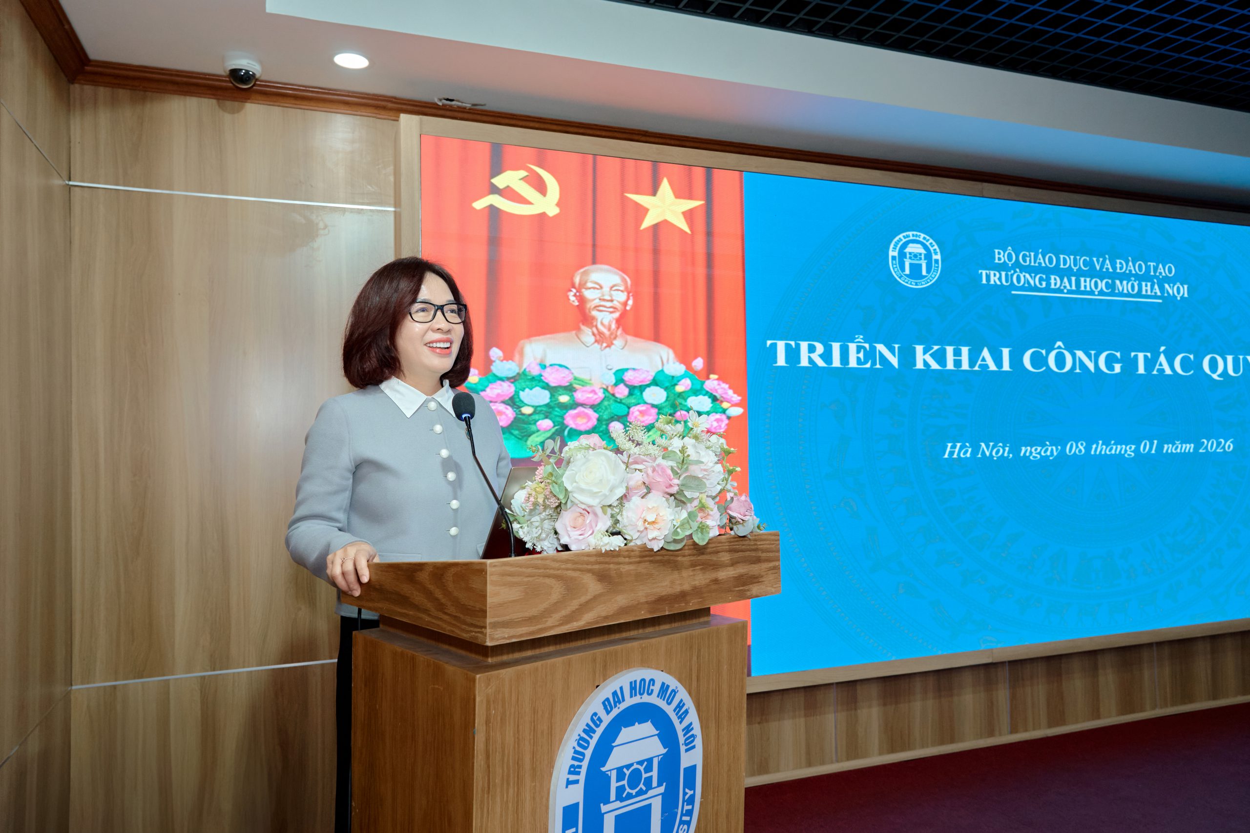 Ngày 08/01/2026, Trường Đại học Mở Hà Nội tổ chức Hội nghị giao ban quý I năm 2026 với sự tham dự của Đảng ủy, Ban Giám hiệu, Bí thư các chi bộ, Lãnh đạo các đơn vị thuộc trường, Chủ tịch Công đoàn, Bí thư Đoàn Thanh niên cùng khách mời. Hội nghị là dịp quan trọng nhằm nhìn nhận, quán triệt các Nghị quyết của Đảng ủy, kiện toàn công tác tổ chức cán bộ, thực hiện công khai minh bạch theo quy định, đồng thời thống nhất phương hướng, nhiệm vụ trọng tâm trong quý I/2026 – Giai đoạn bản lề mở đầu cho năm công tác mới với nhiều yêu cầu đổi mới, bứt phá.
