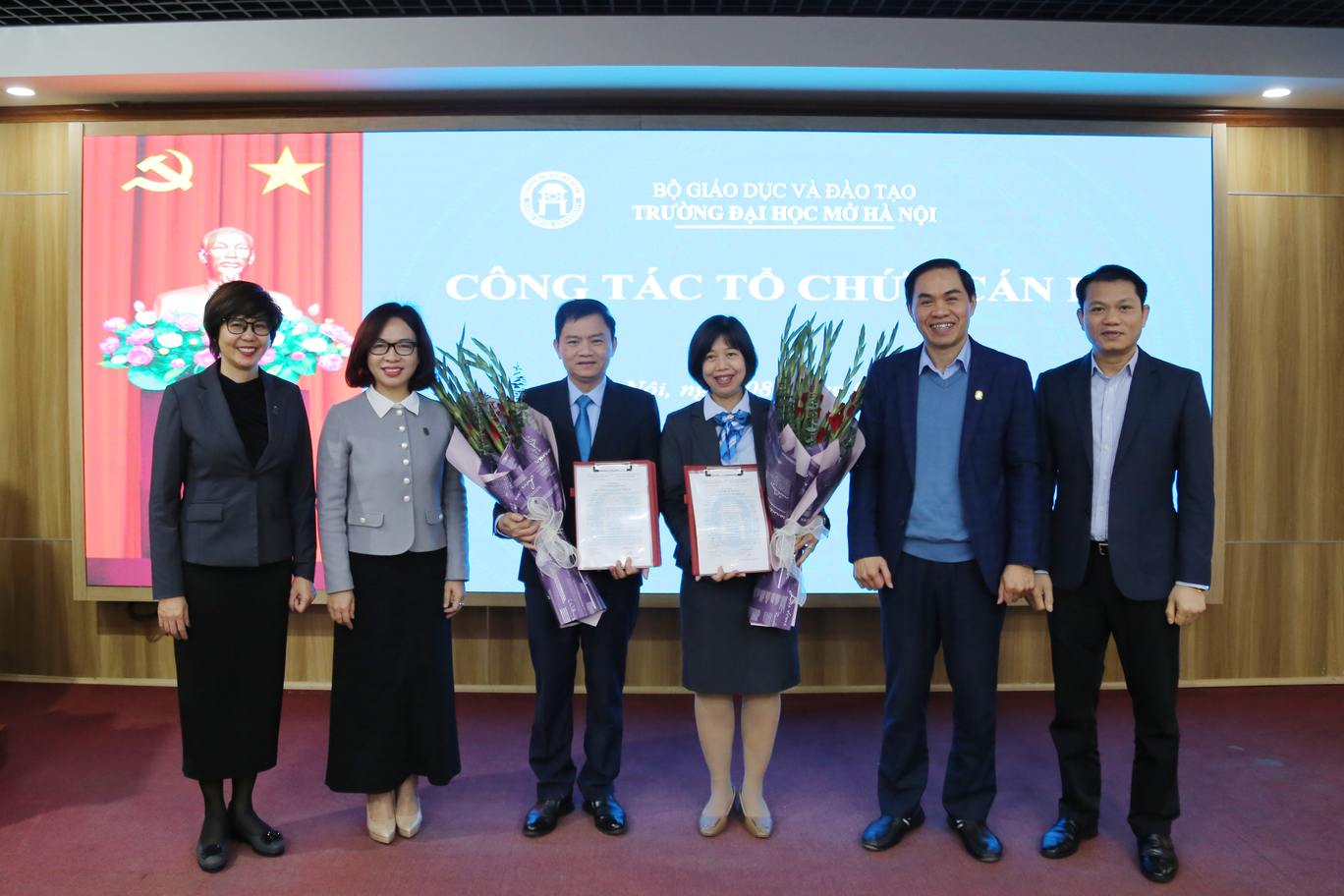 Lãnh đạo trường chúc mừng viên chức được bổ nhiệm, bổ nhiệm lại