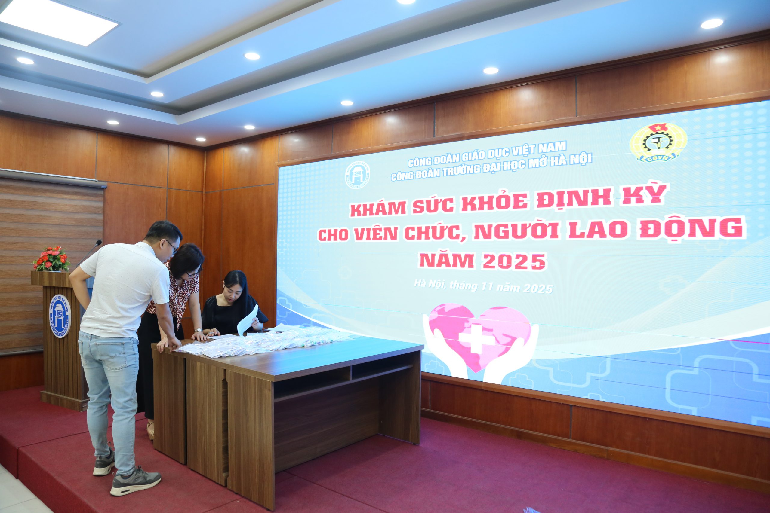 Nhằm chăm lo đời sống, sức khỏe cho cán bộ, giảng viên và người lao động, Công đoàn Trường Đại học Mở Hà Nội đã phối hợp với Bệnh viện Trung ương Quân đội 108 tổ chức khám sức khỏe định kỳ năm 2025 cho toàn thể công đoàn viên. Hoạt động diễn ra trong hai giai đoạn: ngày 13 và 14/11 tiến hành lấy mẫu máu, xét nghiệm nước tiểu; từ ngày 18 đến 21/11 khám tổng quát.