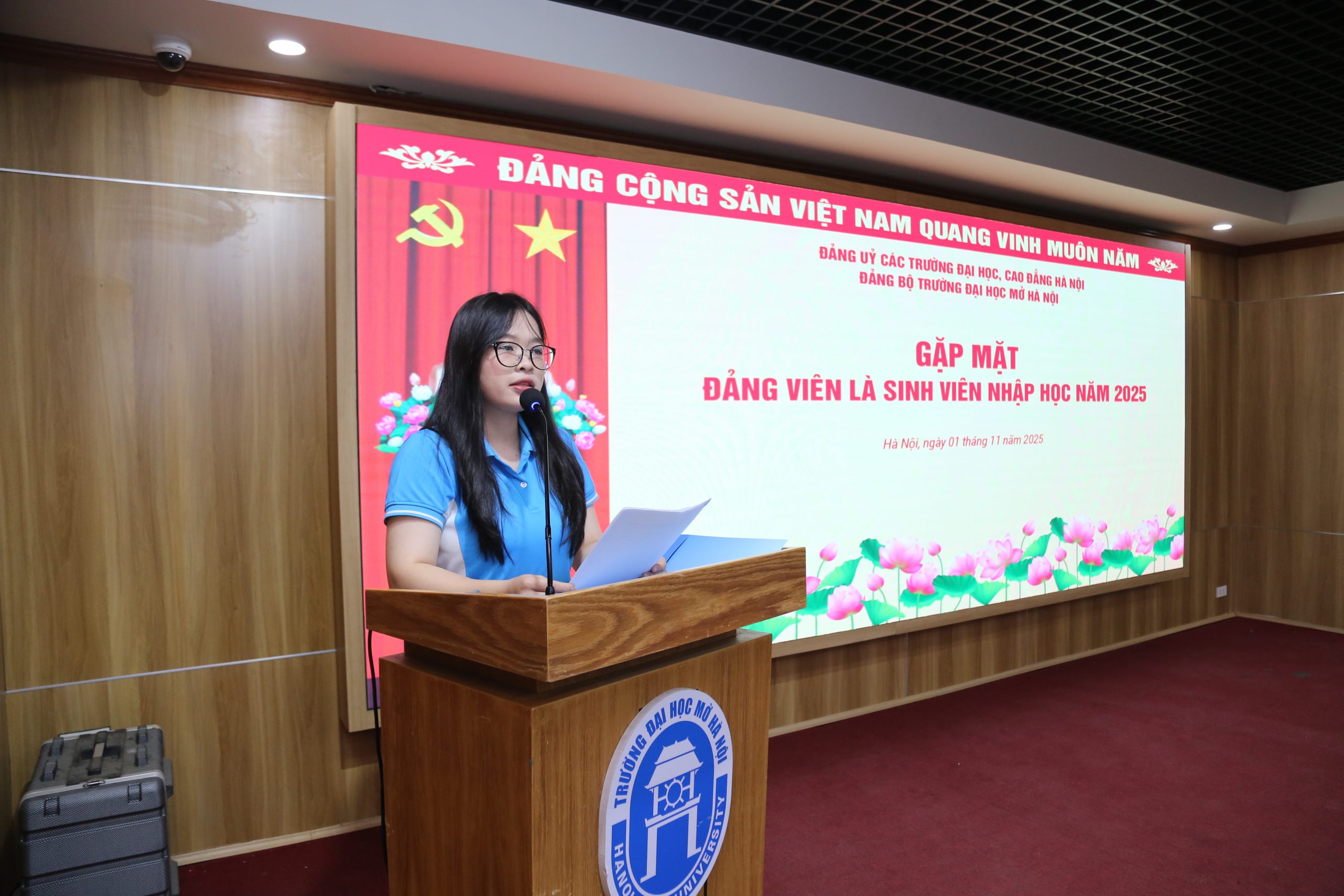 Ngày 01/11/2025, Đảng ủy Trường Đại học Mở Hà Nội tổ chức chương trình “Gặp mặt Đảng viên là sinh viên nhập học năm 2025”, chào mừng các đồng chí Đảng viên là tân sinh viên trúng tuyển vào trường. Đây là hoạt động ý nghĩa nhằm tạo không gian giao lưu, định hướng tư tưởng, đồng thời củng cố niềm tự hào và trách nhiệm của những Đảng viên trẻ khi bước vào môi trường học tập, rèn luyện mới.