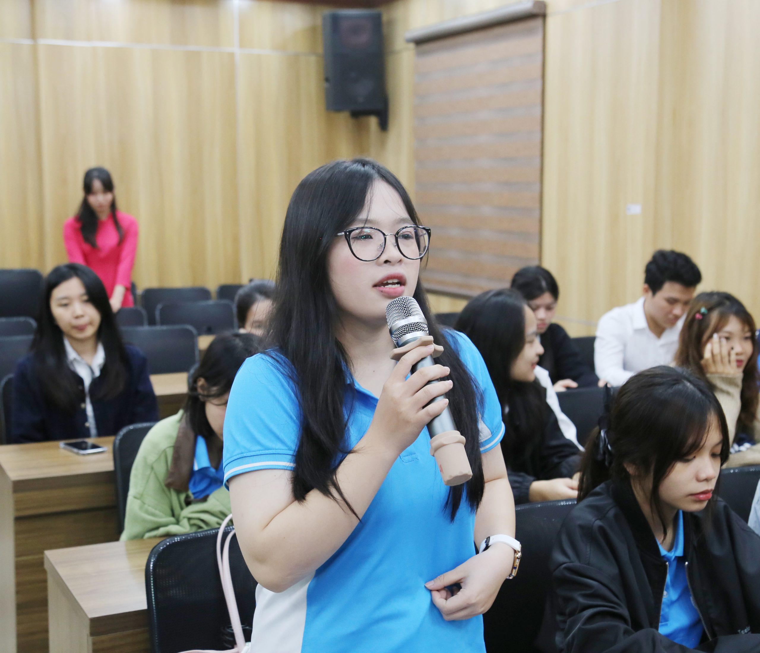 Chương trình tiếp tục với phần trao đổi chuyên đề. Đồng chí Thiều Cẩm Sơn – Bí thư Chi bộ Sinh viên 1 trình bày nội dung “Quá trình phấn đấu trở thành Đảng viên chính thức đối với sinh viên và quy trình thực hiện”, cung cấp thông tin chi tiết về thủ tục, yêu cầu và những lưu ý trong công tác rèn luyện.
