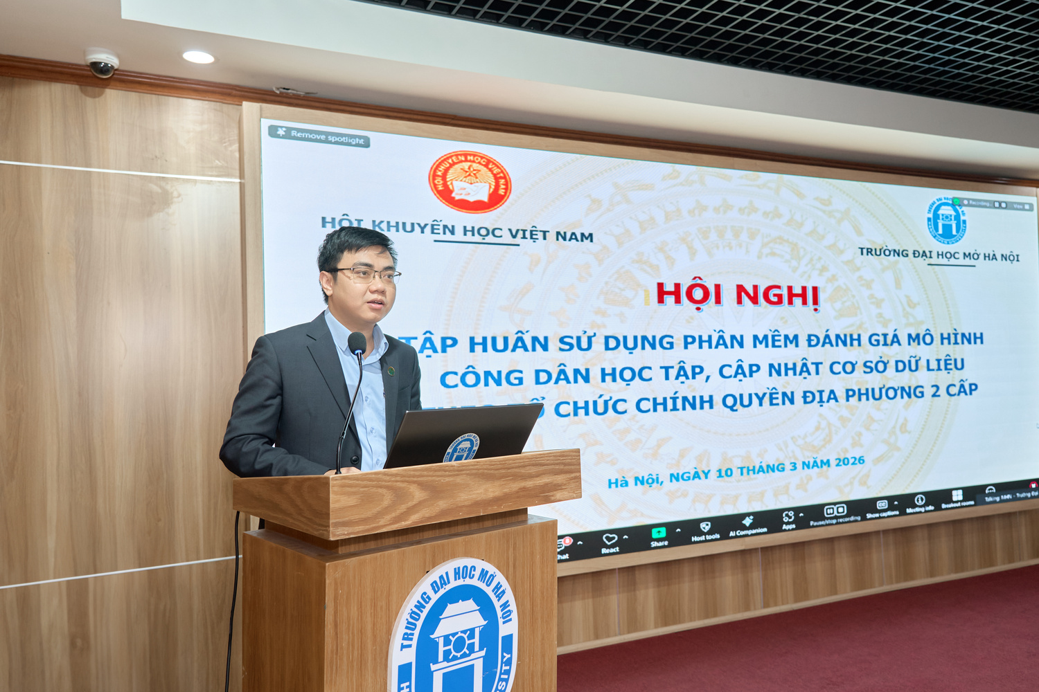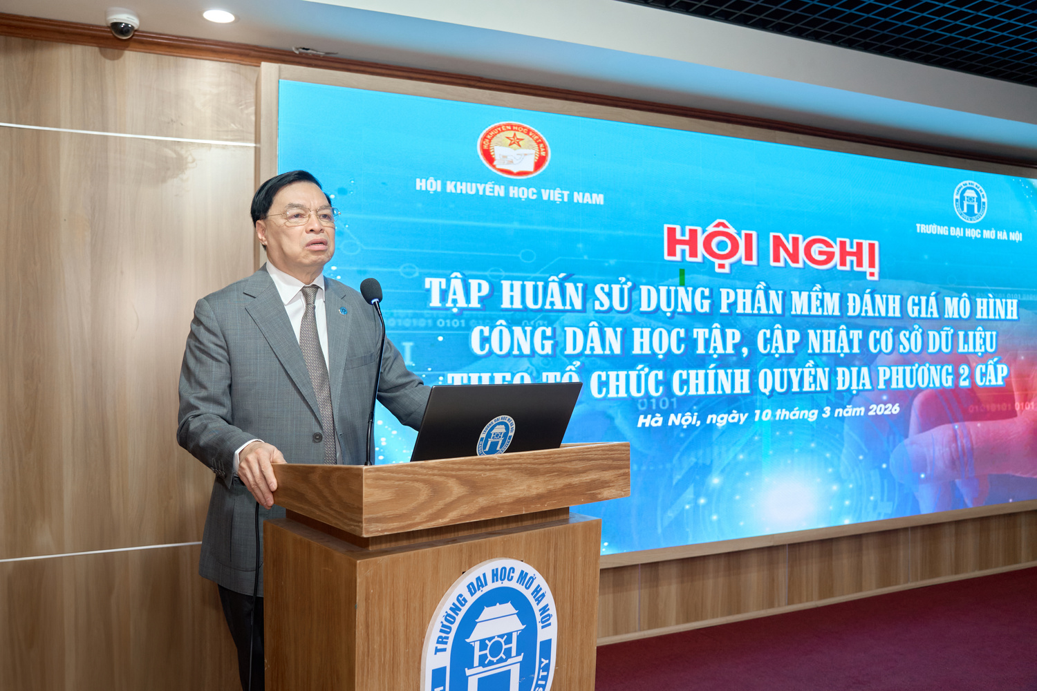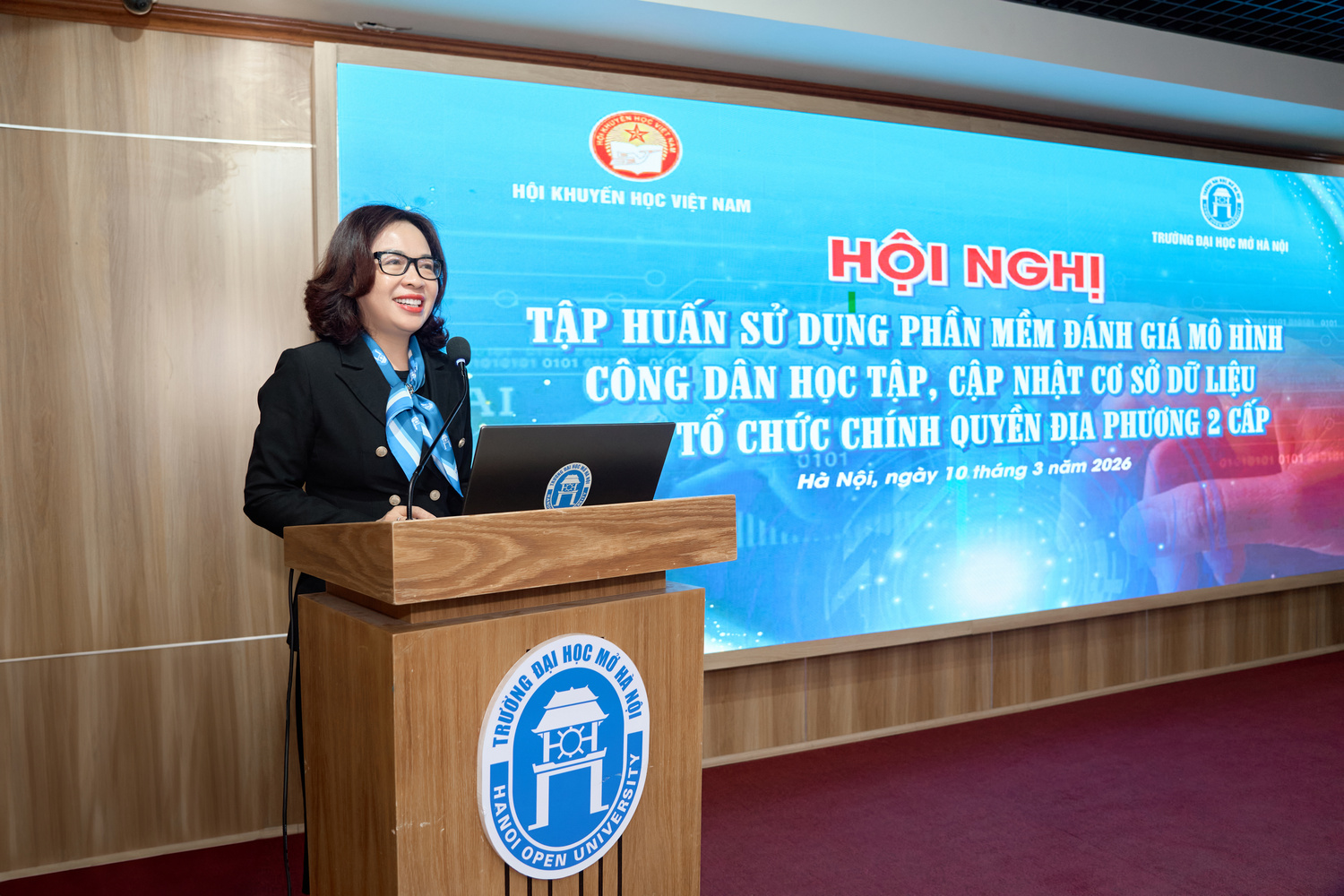 Trong bối cảnh chuyển đổi số đang diễn ra mạnh mẽ trên mọi lĩnh vực của đời sống xã hội, việc ứng dụng công nghệ thông tin vào hoạt động khuyến học, khuyến tài và xây dựng xã hội học tập đã trở thành yêu cầu tất yếu. Nhằm nâng cao hiệu quả quản lý, đánh giá và triển khai mô hình “Công dân học tập”, ngày 10/3/2026, Trường Đại học Mở Hà Nội phối hợp với Hội Khuyến học Việt Nam tổ chức Hội nghị tập huấn sử dụng phần mềm đánh giá mô hình Công dân học tập, cập nhật cơ sở dữ liệu theo tổ chức chính quyền địa phương 2 cấp. Hội nghị được tổ chức trực tiếp tại Trường Đại học Mở Hà Nội và kết nối trực tuyến với 34 điểm cầu của Hội Khuyến học Việt Nam tại các tỉnh/thành phố, thu hút đông đảo cán bộ khuyến học các cấp tham gia.