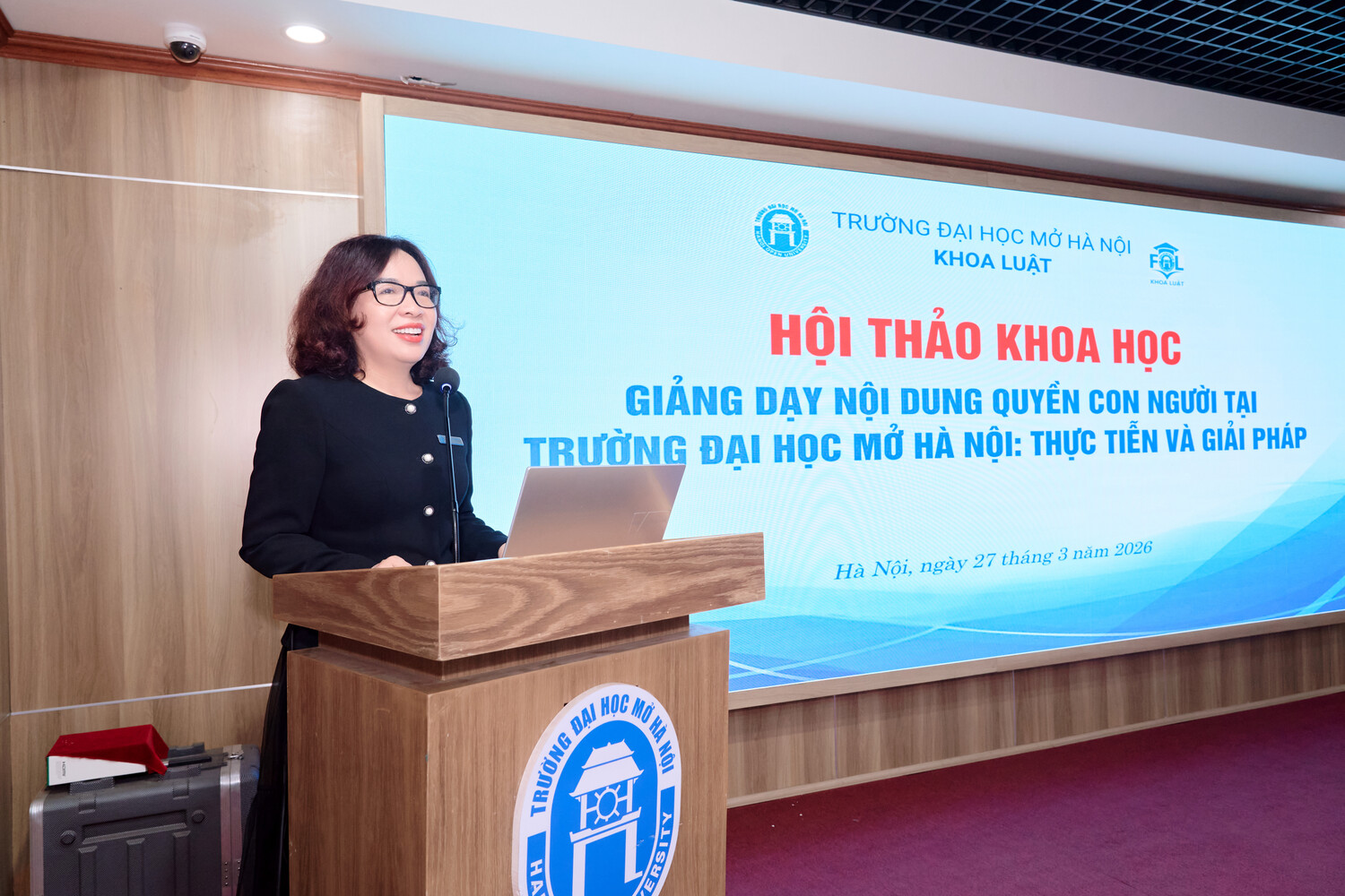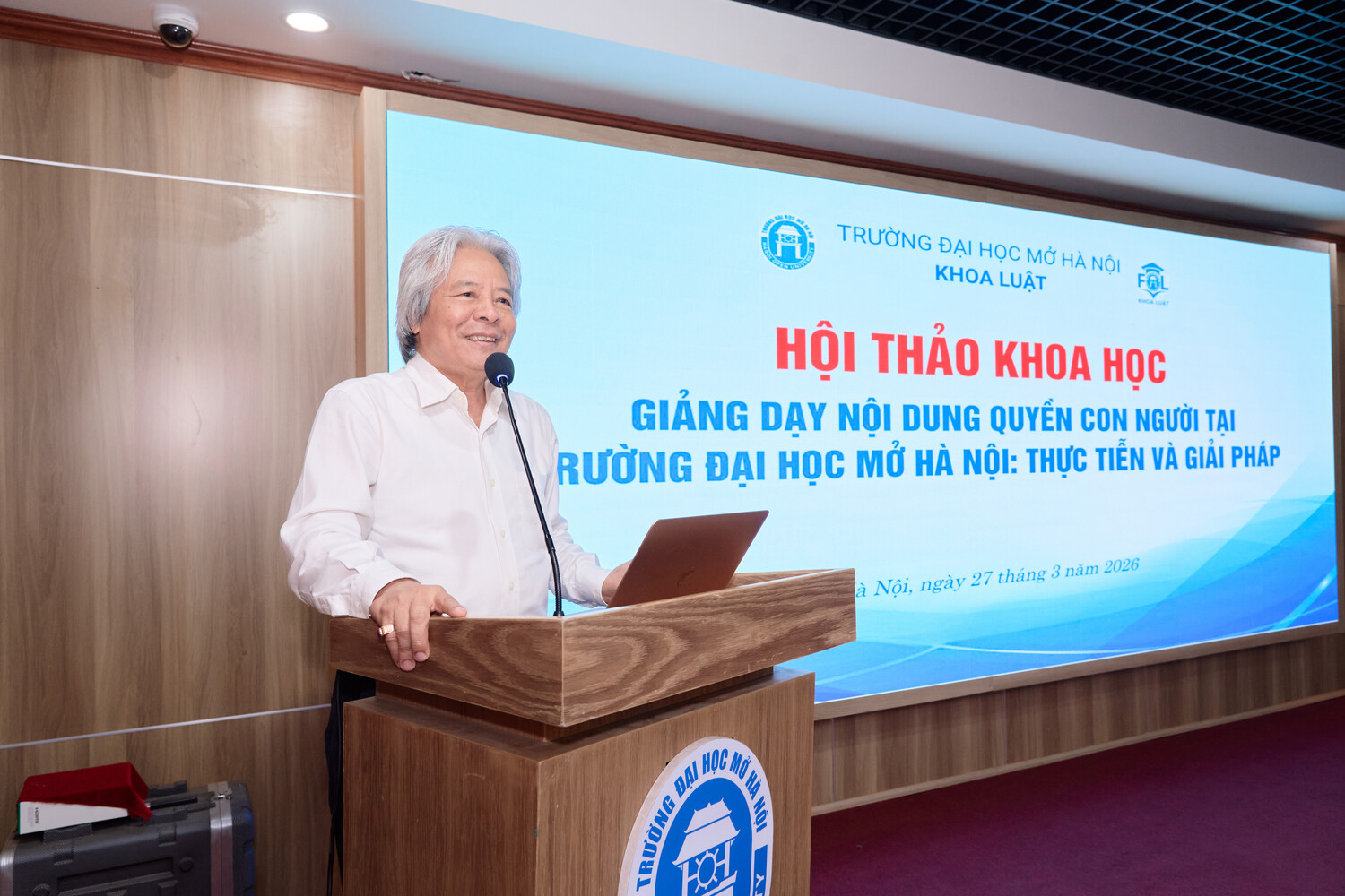 Ngày 27/03/2026, Trường Đại học Mở Hà Nội đã tổ chức Hội thảo khoa học với chủ đề “Giảng dạy nội dung quyền con người tại Trường Đại học Mở Hà Nội: Thực trạng và giải pháp” theo hình thức trực tiếp kết hợp trực tuyến. Hội thảo thu hút gần 200 đại biểu là lãnh đạo nhà trường, giảng viên Khoa Luật cùng các chuyên gia, nhà khoa học đến từ nhiều học viện, trường đại học và viện nghiên cứu trên cả nước, trong đó nổi bật như GS.TS Nguyễn Hồng Thao, UV Ủy ban Luật Quốc tế, Liên Hợp quốc, GS.TS. Võ Khánh Vinh, Chuyên gia cao cấp của Trường Đại học Kiểm sát.