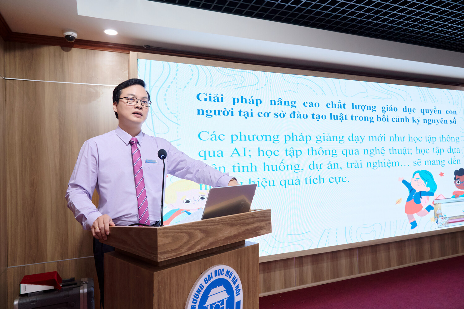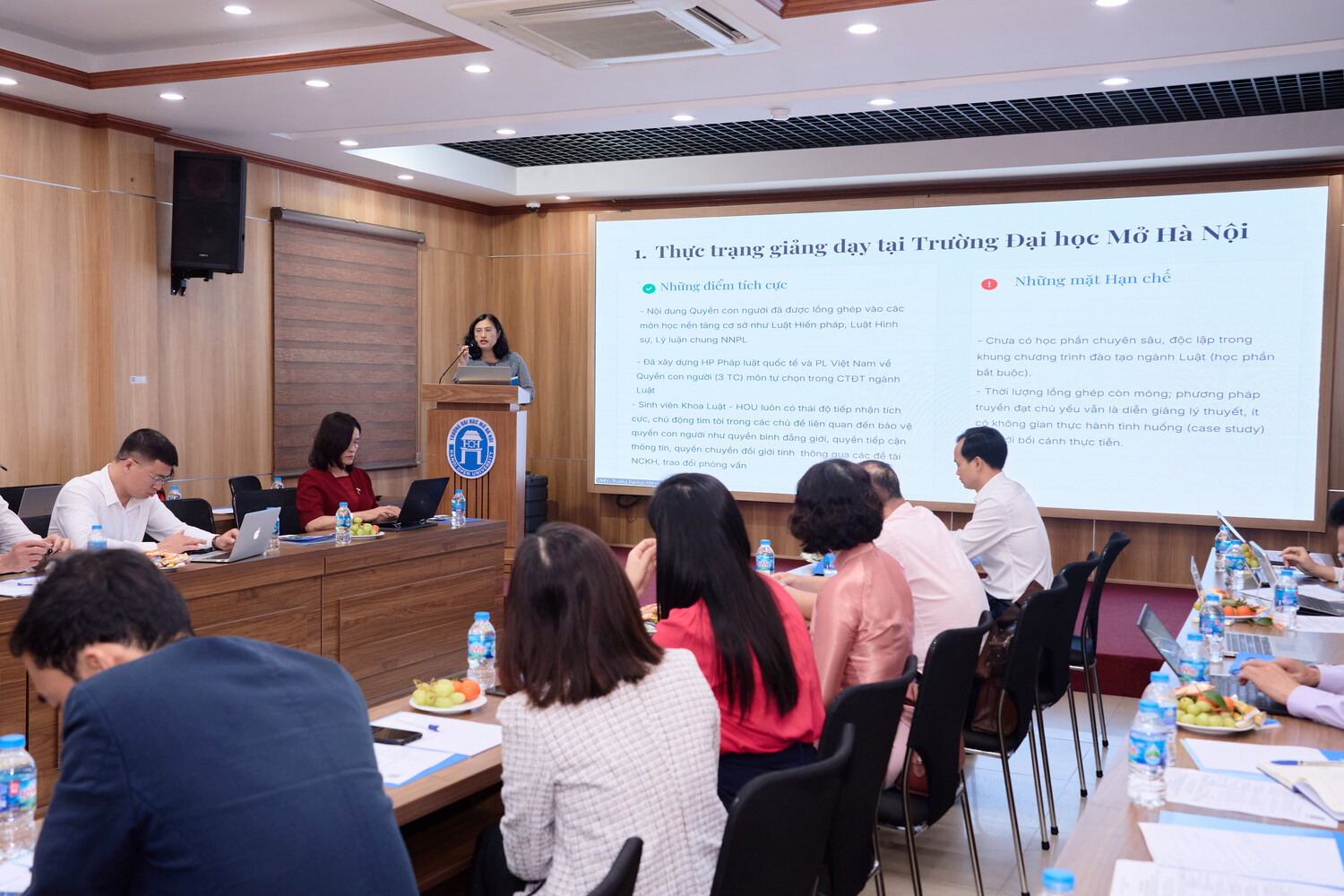 TS. Phùng Trọng Quế, trong tham luận của mình, đã đi sâu phân tích thực tiễn giảng dạy tại Khoa Luật, Trường Đại học Mở Hà Nội. TS. Phùng Trọng Quế chỉ ra rằng chương trình đào tạo hiện nay đã có những bước tiến nhất định, nhưng vẫn còn thiếu sự tích hợp giữa các học phần và chưa tận dụng hiệu quả các phương pháp giảng dạy hiện đại.