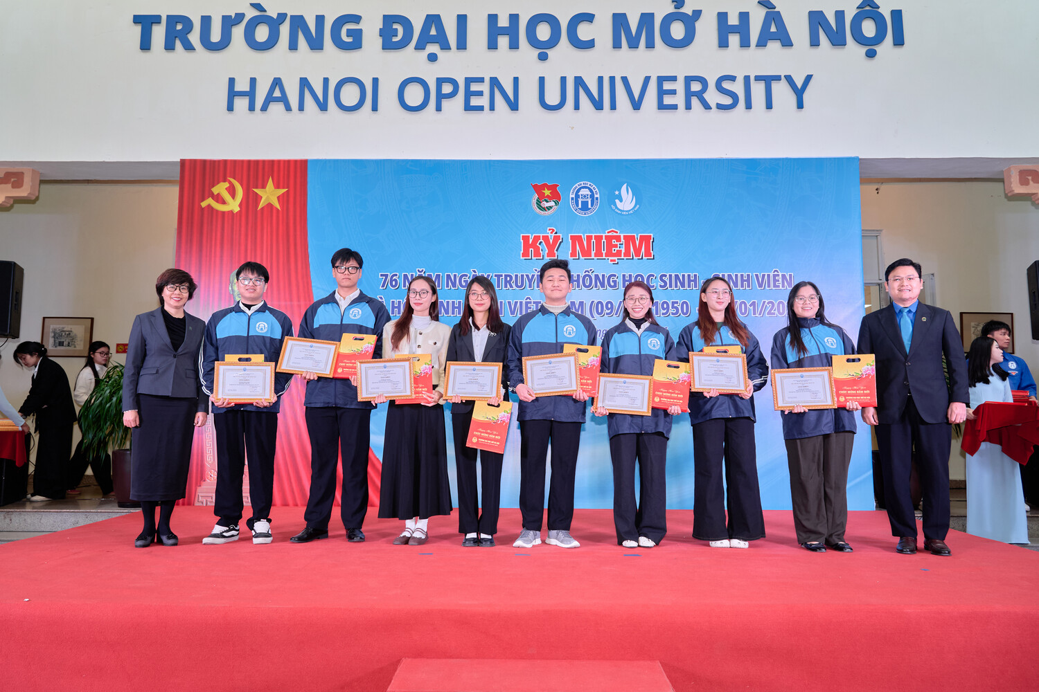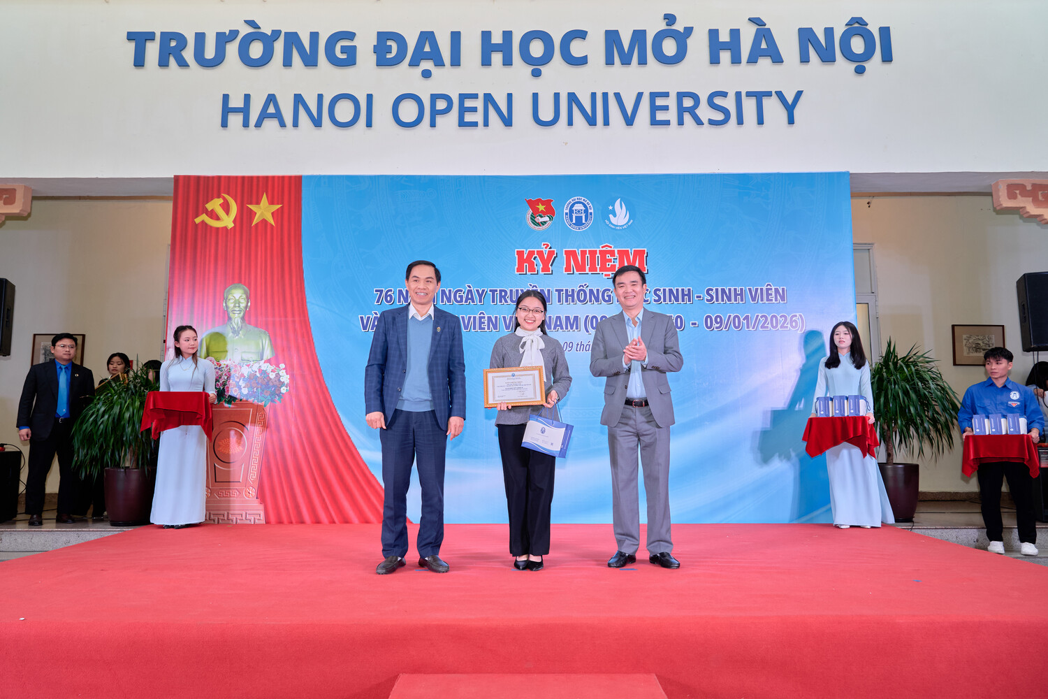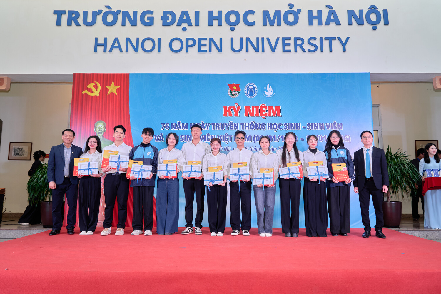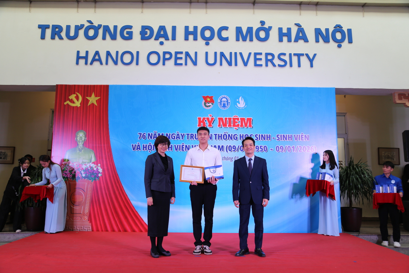 Ngày 09 tháng 01 năm 2026, Trường Đại học Mở Hà Nội long trọng tổ chức Kỷ niệm 76 năm Ngày truyền thống Học sinh, Sinh viên và Hội Sinh viên Việt Nam (09/01/1950 – 09/01/2026). Đây không chỉ là dịp ôn lại chặng đường lịch sử vẻ vang của phong trào học sinh, sinh viên Việt Nam, mà còn là thời khắc để thế hệ sinh viên hôm nay soi chiếu mình trong truyền thống, tiếp tục khẳng định vai trò, trách nhiệm và khát vọng cống hiến cho đất nước trong giai đoạn phát triển mới.