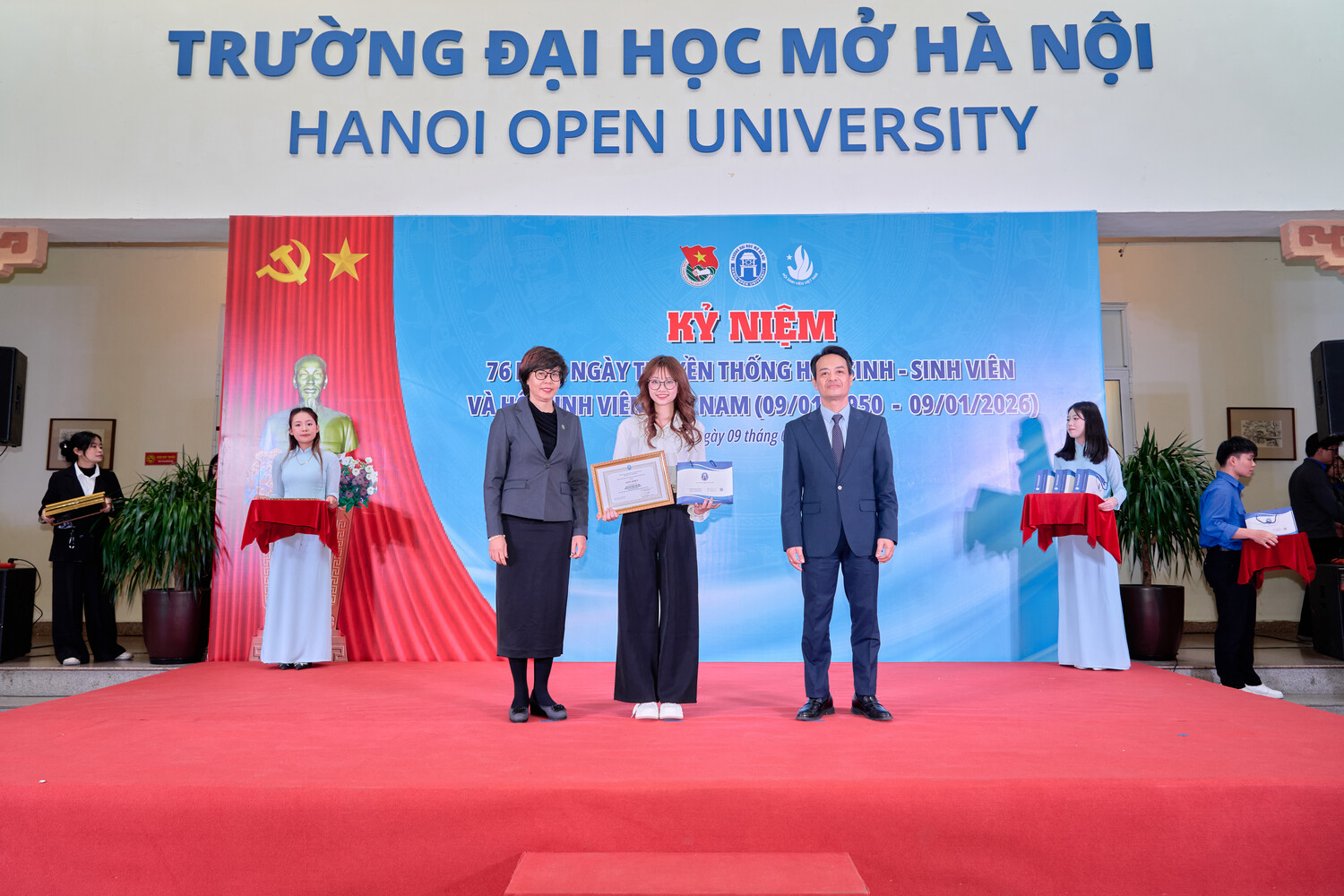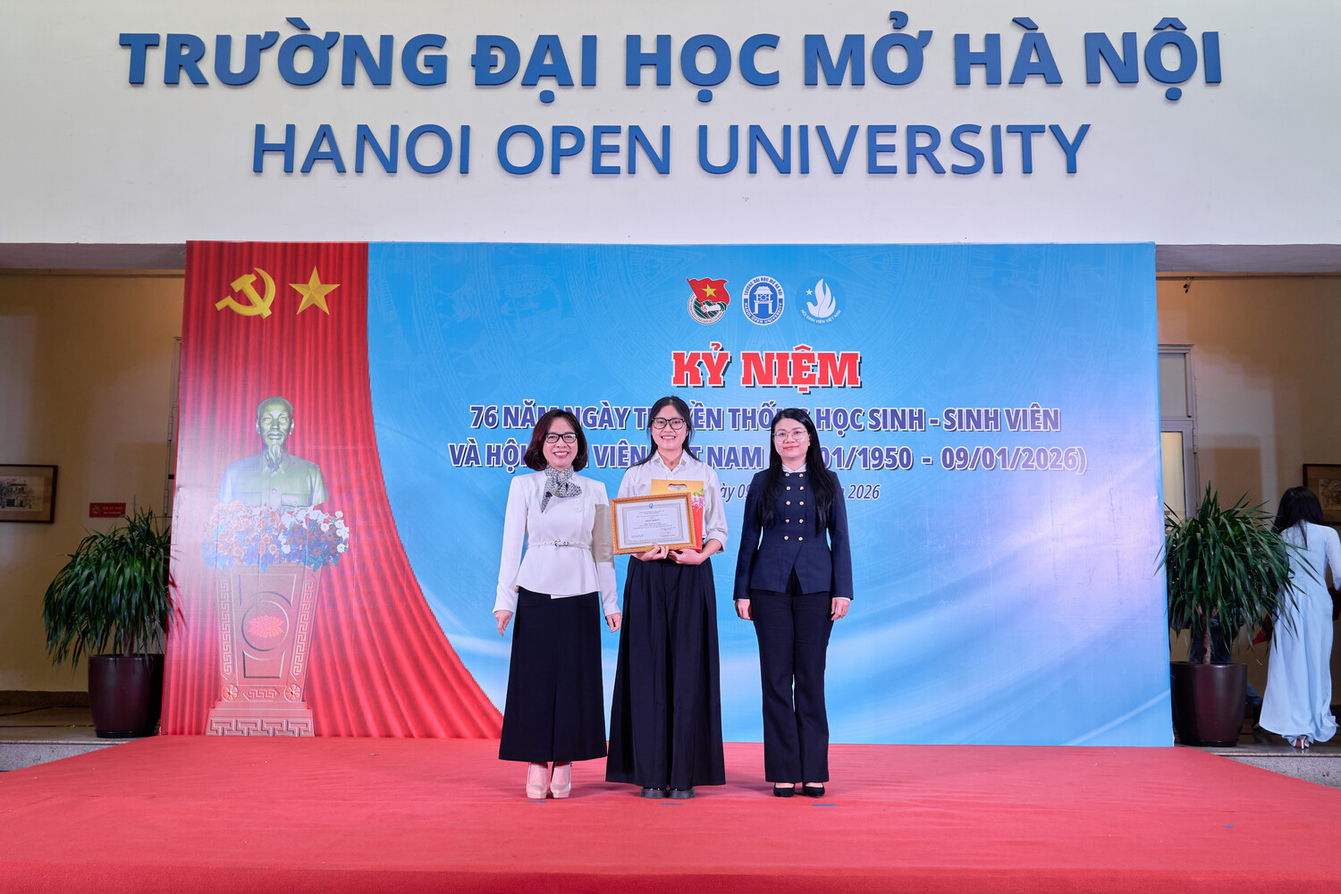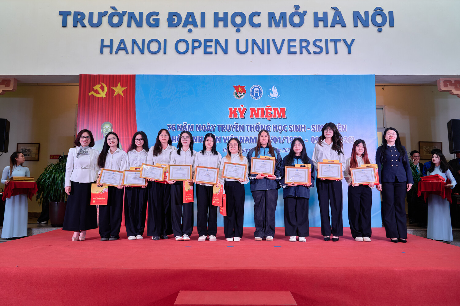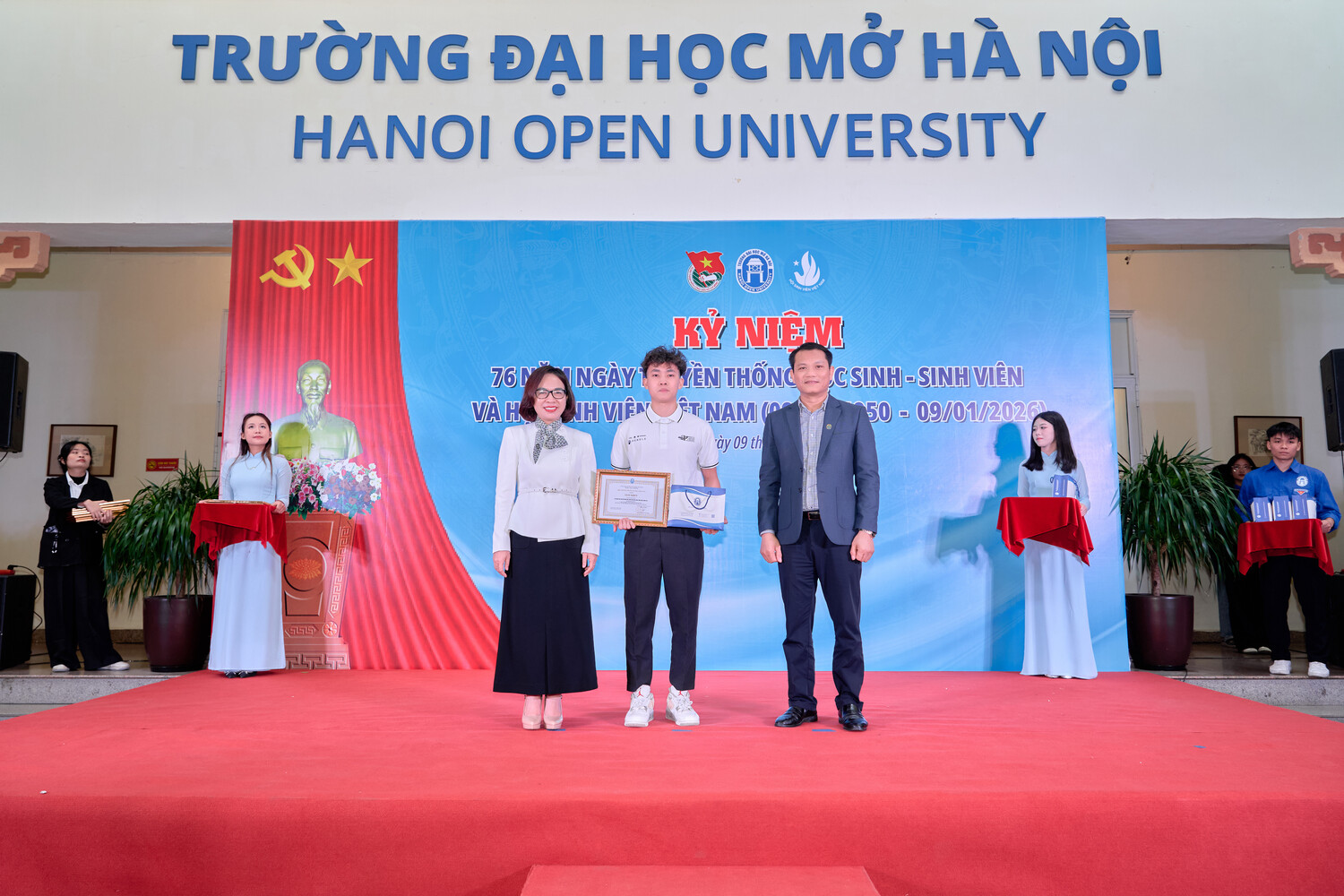 Ngày 09 tháng 01 năm 2026, Trường Đại học Mở Hà Nội long trọng tổ chức Kỷ niệm 76 năm Ngày truyền thống Học sinh, Sinh viên và Hội Sinh viên Việt Nam (09/01/1950 – 09/01/2026). Đây không chỉ là dịp ôn lại chặng đường lịch sử vẻ vang của phong trào học sinh, sinh viên Việt Nam, mà còn là thời khắc để thế hệ sinh viên hôm nay soi chiếu mình trong truyền thống, tiếp tục khẳng định vai trò, trách nhiệm và khát vọng cống hiến cho đất nước trong giai đoạn phát triển mới.