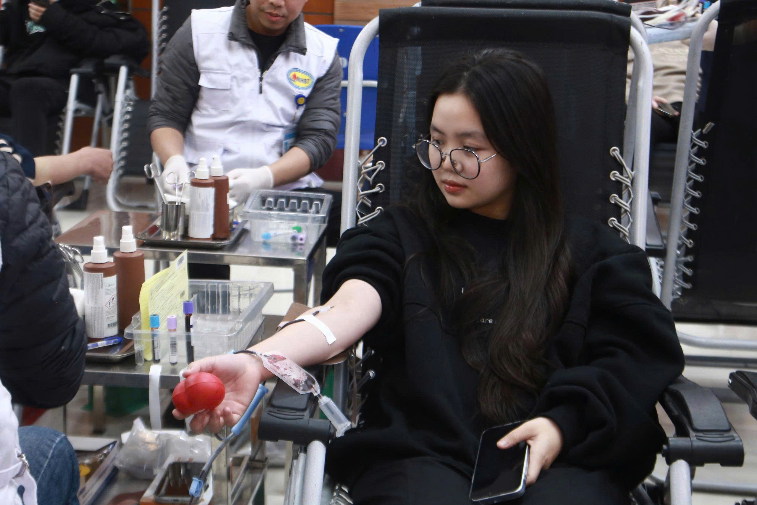 Cán bộ, giảng viên và sinh viên Trường Đại học Mở Hà Nội tham gia hiến máu tình nguyện