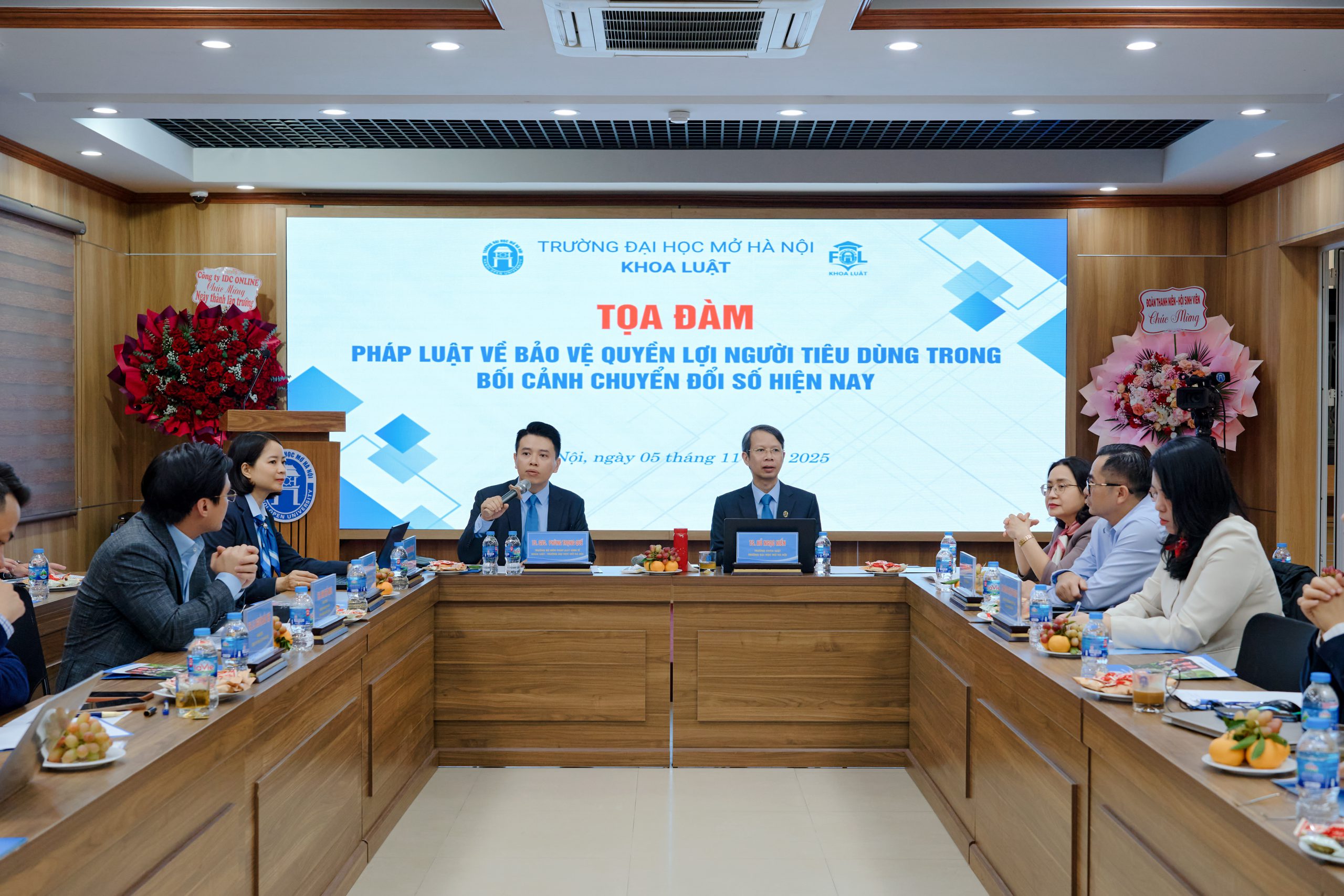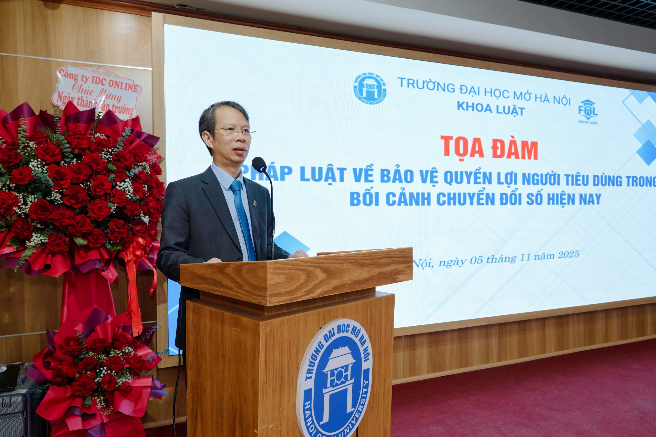 Trong bối cảnh nền kinh tế số phát triển mạnh mẽ, thương mại điện tử bùng nổ và các mô hình kinh doanh trực tuyến không ngừng được đổi mới, yêu cầu đặt ra đối với việc bảo vệ quyền lợi người tiêu dùng ngày càng trở nên cấp thiết. Nhằm trao đổi, phân tích và đề xuất các giải pháp nhằm hoàn thiện pháp luật, đồng thời nâng cao nhận thức và trách nhiệm của các chủ thể trong nền kinh tế số, ngày 05/11/2025, Khoa Luật, Trường Đại học Mở Hà Nội đã long trọng tổ chức Tọa đàm khoa học với chủ đề “Pháp luật bảo vệ quyền lợi người tiêu dùng trong bối cảnh chuyển đổi số hiện nay”. Chương trình thu hút sự tham dự của 100 đại biểu gồm lãnh đạo khoa, các đơn vị trực thuộc, giảng viên cùng nhiều chuyên gia đến từ các cơ quan quản lý nhà nước, viện nghiên cứu, trường đại học và đại diện doanh nghiệp.