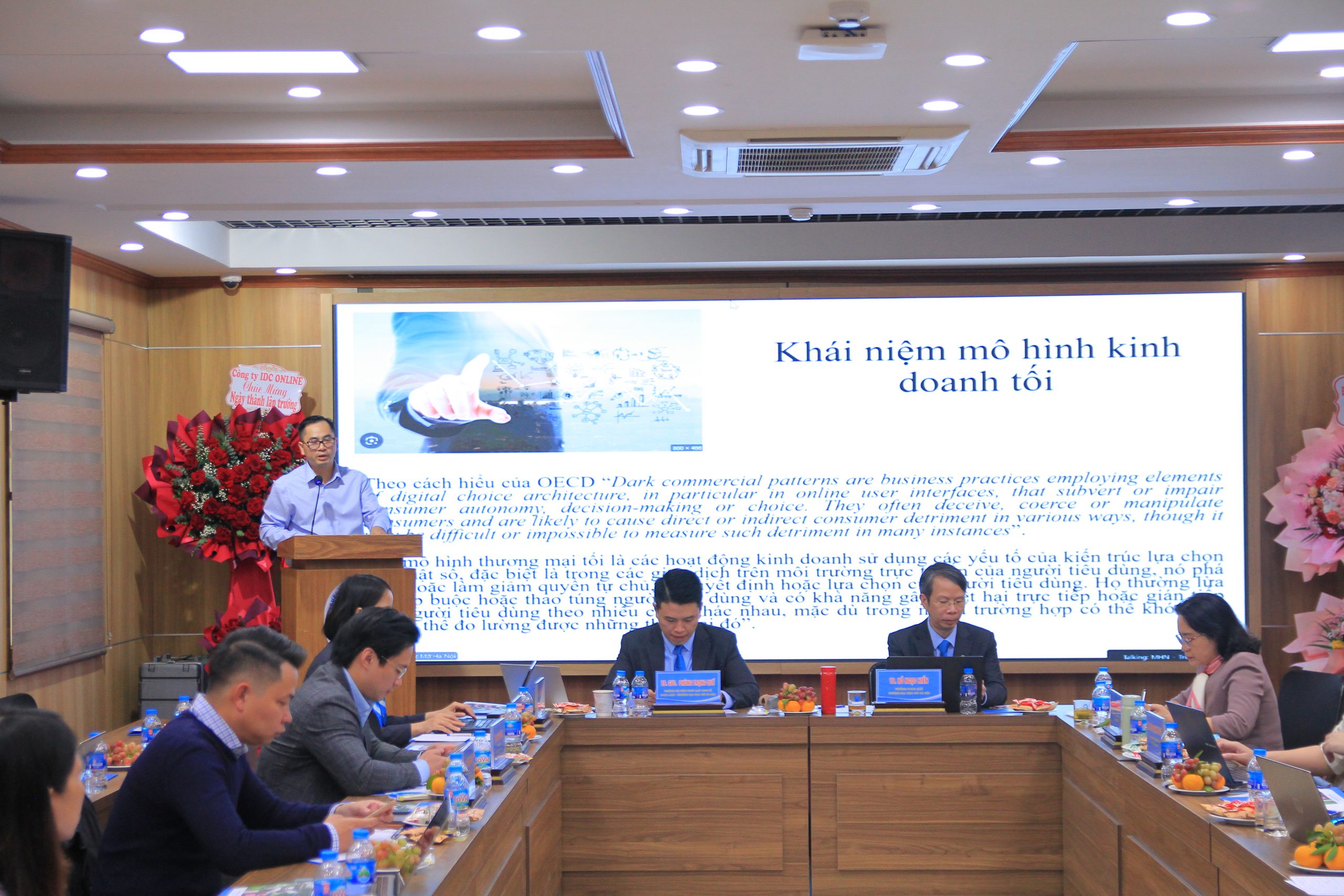 Kết thúc phần tham luận, TS. Phùng Trọng Quế -Trưởng Bộ môn Luật Kinh tế Trường Đại học Mở Hà Nội mang đến cái nhìn quốc tế với đề tài “Giải quyết tranh chấp tiêu dùng phát sinh từ sàn thương mại điện tử bằng phương thức trực tuyến (ODR) – Kinh nghiệm từ EU và Trung Quốc và một số khuyến nghị cho Việt Nam”. Diễn giả đề xuất phát triển nền tảng ODR quốc gia để tối ưu hóa quá trình xử lý tranh chấp, giúp người tiêu dùng tiếp cận công lý nhanh hơn và tiết kiệm chi phí.