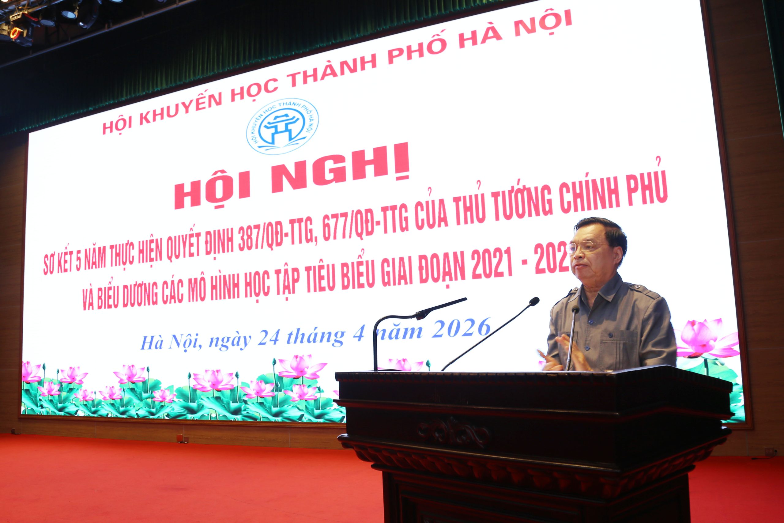 Ngày 24/04/2026 Hội Khuyến học Hà Nội đã tổ chức Hội nghị sơ kết 5 năm thực hiện Quyết định số 387/QĐ-TTg và 677/QĐ-TTg của Thủ tướng Chính phủ, đồng thời biểu dương các mô hình học tập tiêu biểu giai đoạn 2021-2026.