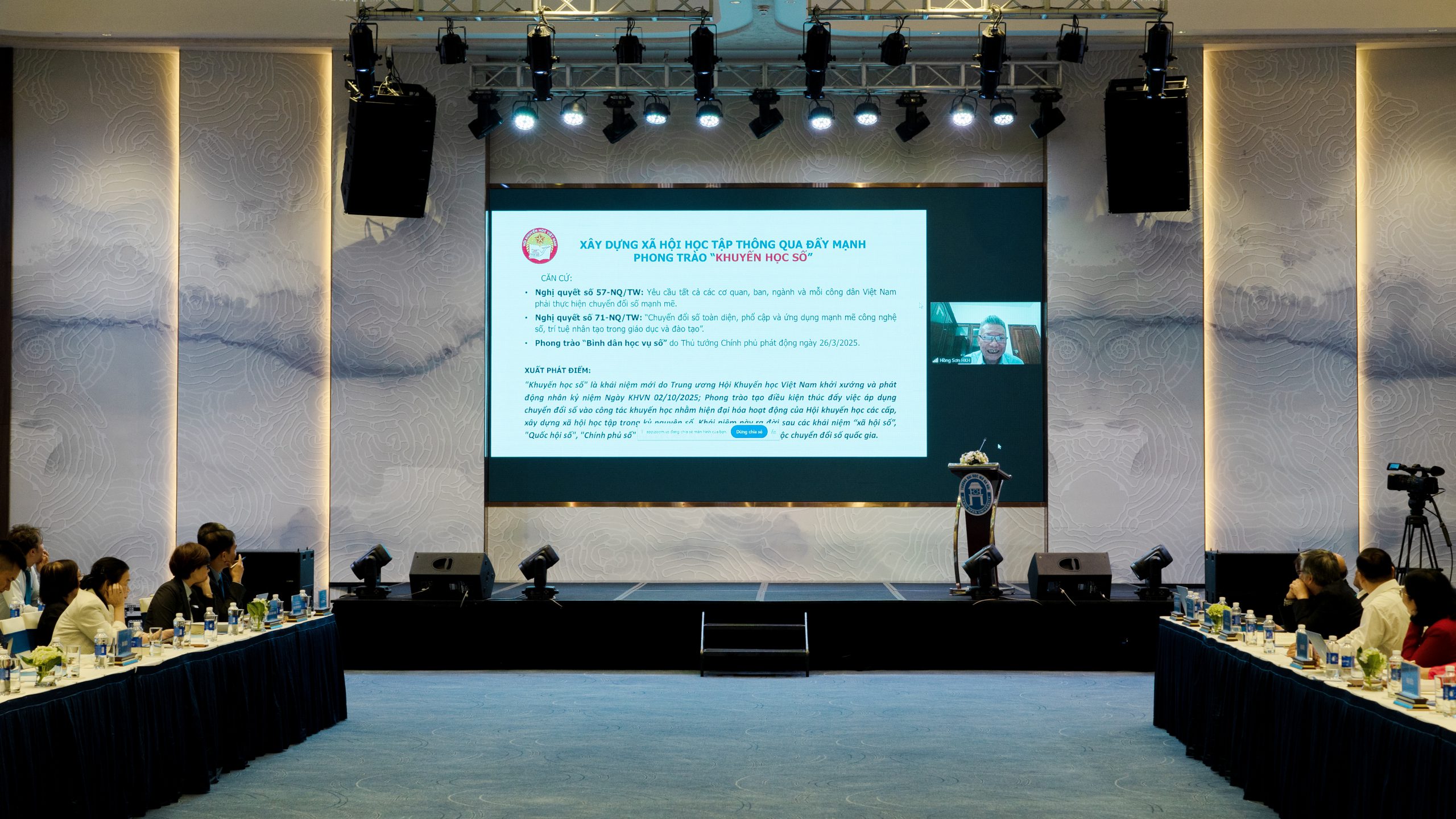 Đáng chú ý, TS. Nguyễn Hồng Sơn – Phó Chủ tịch Hội Khuyến học Việt Nam, trình bày tham luận “Xây dựng xã hội học tập thông qua đẩy mạnh phong trào: khuyến học số – khuyến học xanh”. TS. Nguyễn Hồng Sơn nhấn mạnh mối liên kết giữa chuyển đổi số và phát triển bền vững, khuyến khích các địa phương phát triển phong trào khuyến học gắn với các mục tiêu bảo vệ môi trường, tiết kiệm năng lượng và nâng cao nhận thức công dân số.