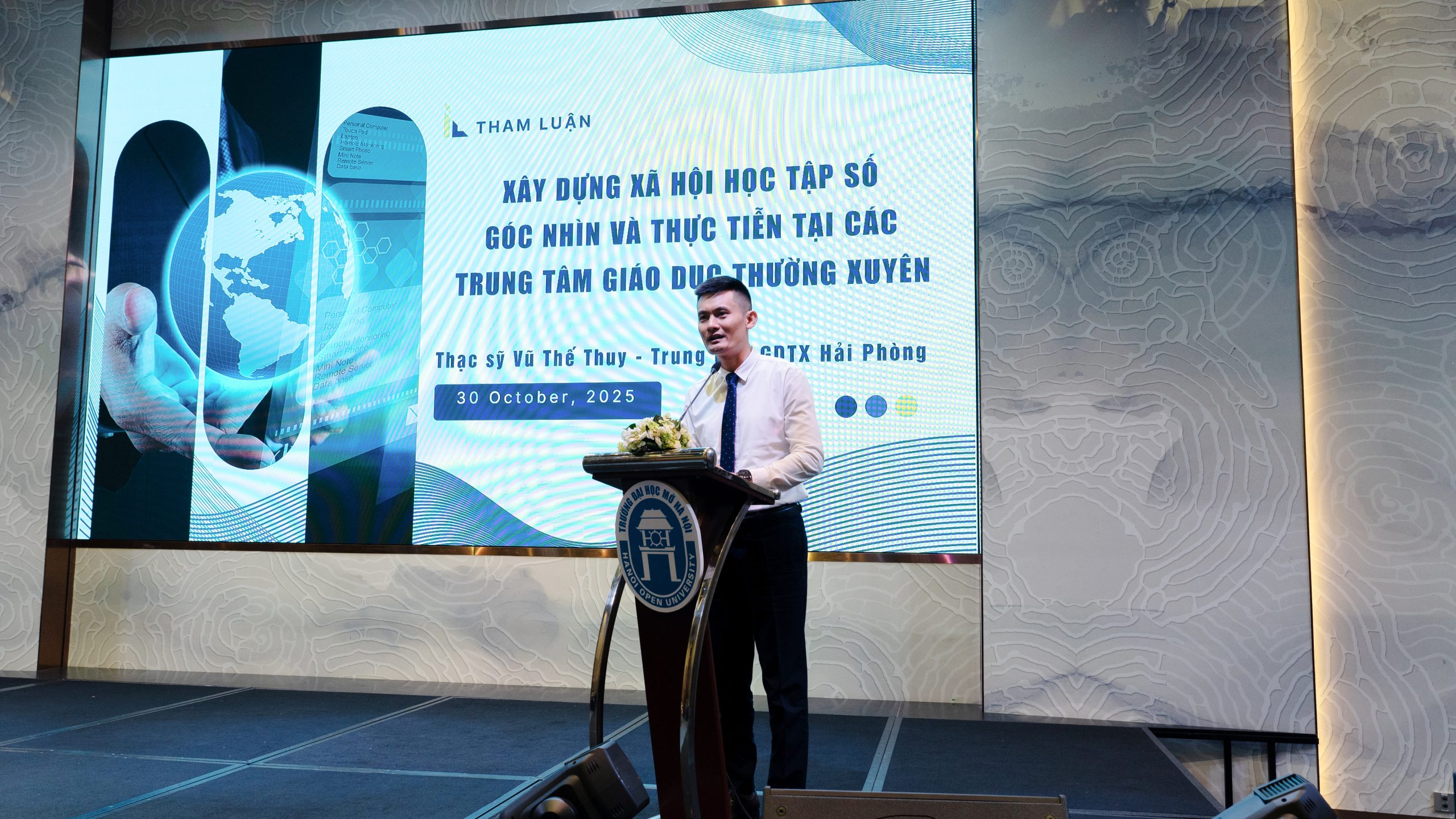ThS. Vũ Thế Thuy – Phó Giám đốc Trung tâm Giáo dục thường xuyên Hải Phòng, trình bày tham luận