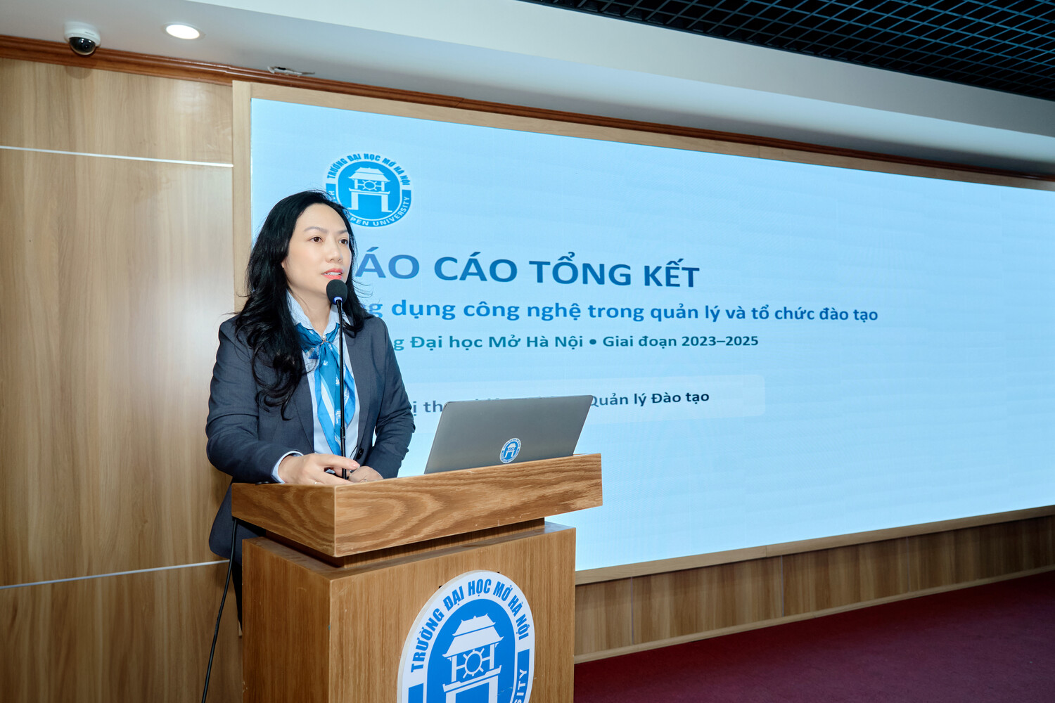 Trong báo cáo tổng kết tình hình ứng dụng công nghệ trong quản lý và tổ chức đào tạo, TS. Trần Thị Lan Thu – Trưởng phòng Quản lý Đào tạo đã phác họa bức tranh toàn diện về những kết quả nổi bật mà Nhà trường đạt được trong những năm gần đây. Các hệ thống quản lý đào tạo, quản lý sinh viên, quản lý học liệu, đăng ký học phần, khảo thí… từng bước được số hóa, liên thông và chuẩn hóa.