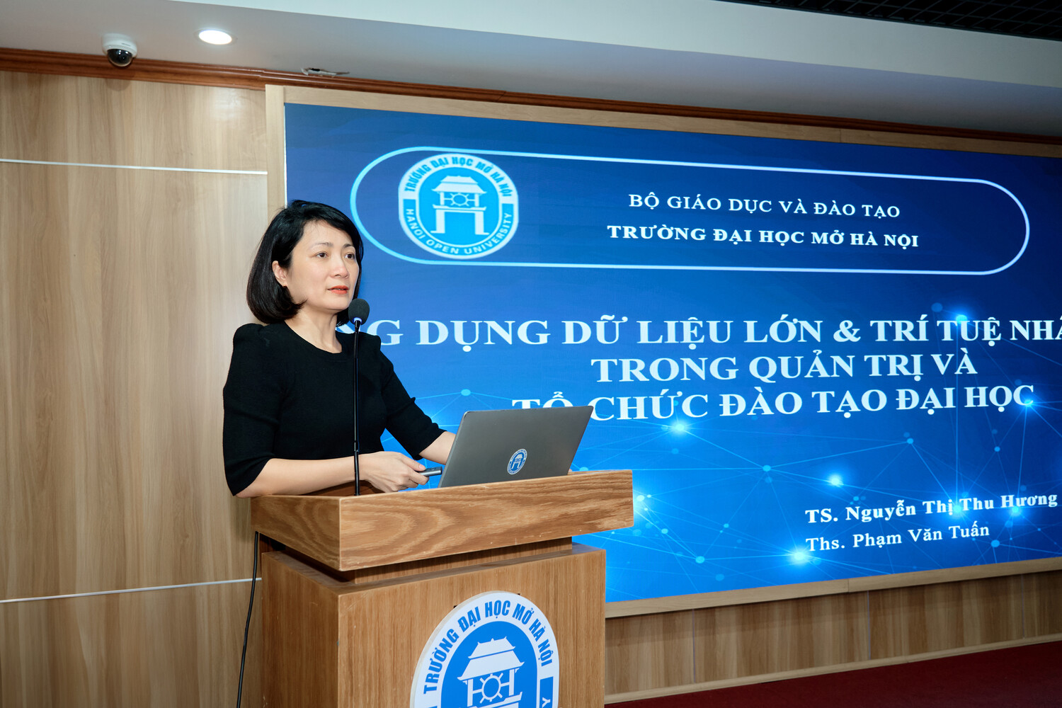 Ở góc nhìn quản lý vĩ mô, TS. Nguyễn Thị Thu Hương – Trưởng khoa Kinh tế đã phân tích xu hướng ứng dụng dữ liệu lớn và trí tuệ nhân tạo trong quản lý đào tạo đại học. Tham luận nhấn mạnh vai trò của dữ liệu như “tài sản chiến lược”, giúp Nhà trường dự báo nhu cầu đào tạo, tối ưu hóa nguồn lực và nâng cao chất lượng ra quyết định.