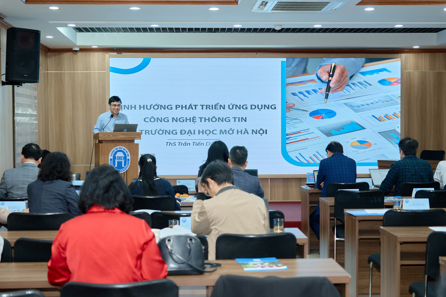 Phát biểu khai mạc Hội nghị, PGS.TS Dương Thăng Long – Phó Hiệu trưởng Nhà trường nhấn mạnh: trong bối cảnh giáo dục đại học đang chịu tác động sâu sắc của cuộc Cách mạng công nghiệp lần thứ tư, việc ứng dụng công nghệ thông tin không còn là lựa chọn mà đã trở thành yêu cầu tất yếu. Theo PGS.TS Dương Thăng Long, quản lý và tổ chức đào tạo chỉ thực sự hiệu quả khi được đặt trên nền tảng dữ liệu số, quy trình số hóa và các công cụ công nghệ hiện đại cùng với ba vấn đề cốt lõi: Thứ nhất, ứng dụng công nghệ phải gắn chặt với mục tiêu nâng cao chất lượng đào tạo, lấy người học làm trung tâm. Thứ hai, chuyển đổi số không chỉ là đầu tư hạ tầng hay phần mềm, mà quan trọng hơn là thay đổi tư duy quản lý, phương thức điều hành và năng lực số của đội ngũ cán bộ, giảng viên. Thứ ba, Trường Đại học Mở Hà Nội cần phát huy lợi thế của một cơ sở giáo dục đại học định hướng mở, linh hoạt, để đi đầu trong việc thử nghiệm, triển khai các mô hình quản lý đào tạo dựa trên trí tuệ nhân tạo, dữ liệu lớn và các công nghệ mới.