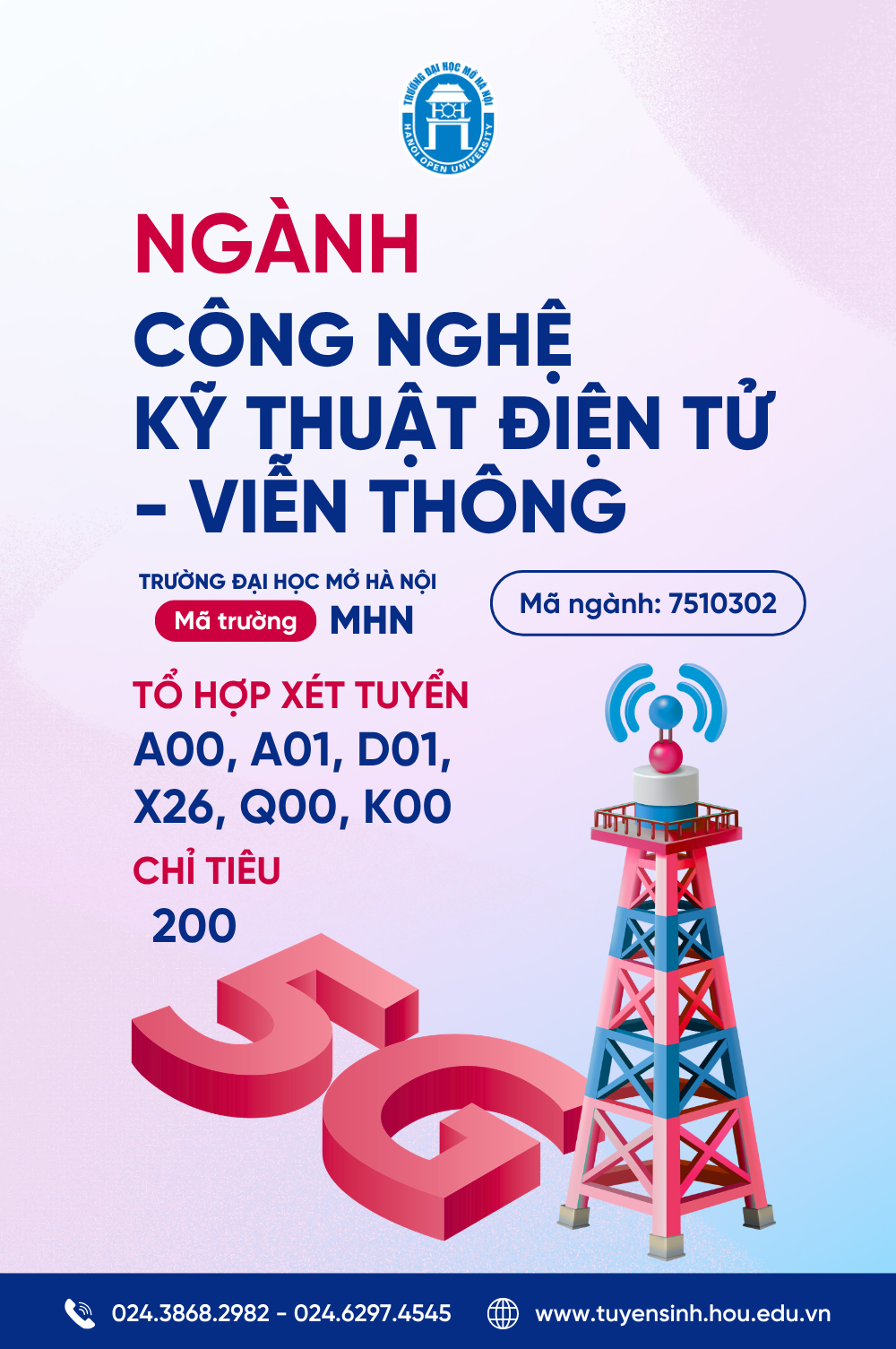 Nếu bạn có đam mê với công nghệ, muốn trở thành một phần của cuộc cách mạng công nghiệp hiện đại, hãy lựa chọn ngành Công nghệ Kỹ thuật Điện tử – Viễn thông của Khoa Điện – Điện tử Trường Đại học Mở Hà Nội  để xây dựng tương lai vững chắc